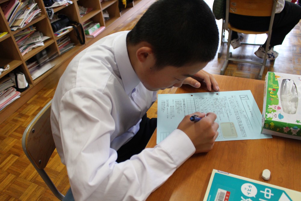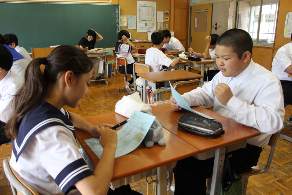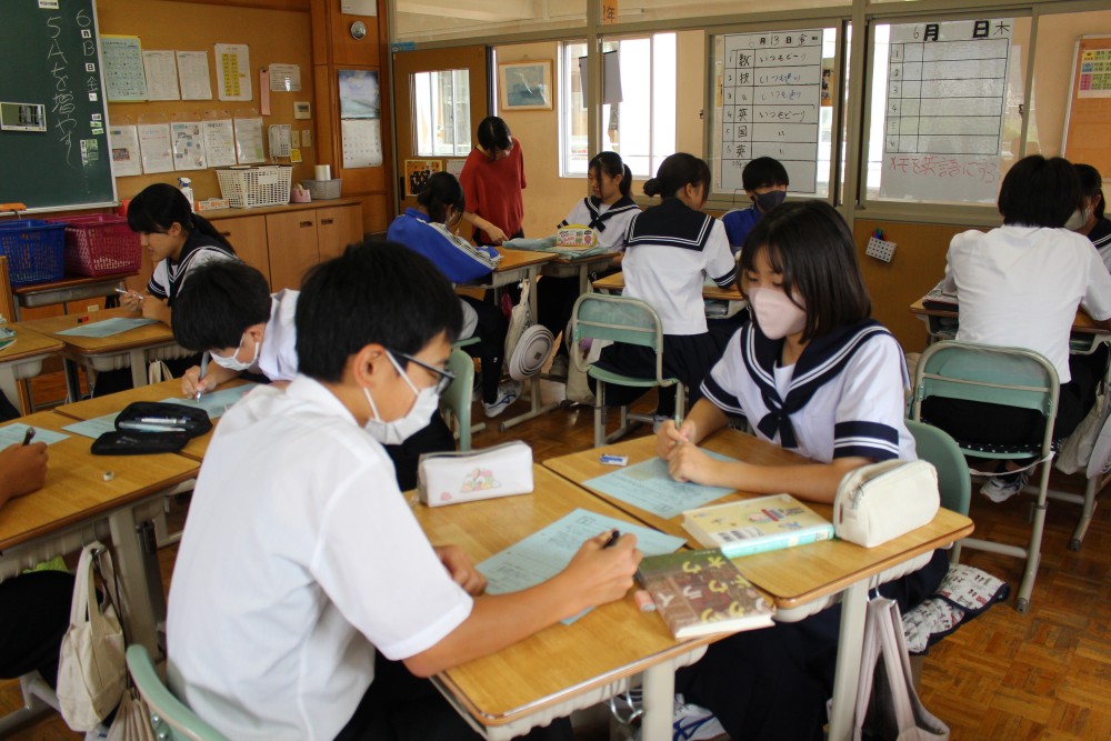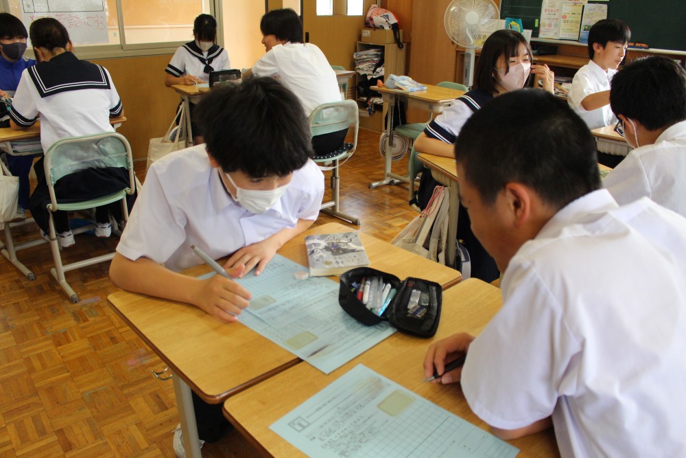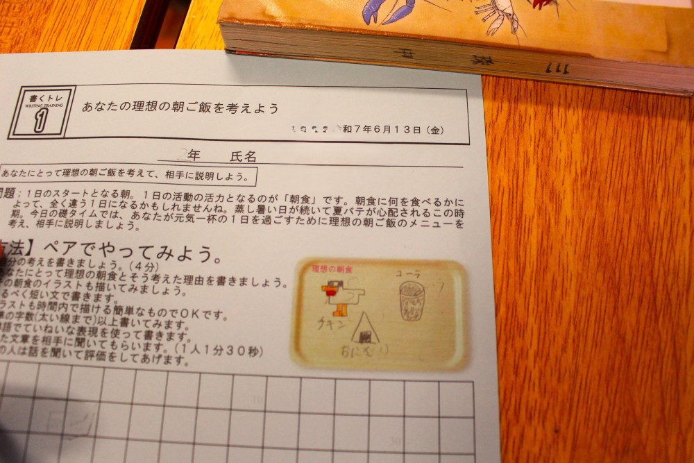 毎週金曜日はいしずえタイム。第10回目となる本日は「書くトレ」。お題は『あなたの理想の朝ご飯を考えよう』です。梅雨入りし、蒸し暑い日が続くこの時期、1日を元気いっぱいに過ごすのにふさわしい朝食を各々に考えてもらました。中には『カロリーメイト』とかいた生徒もいて、『それってどうなのか』話が盛り上がりました。次週も『食』に関する問題を用意しています。お楽しみに。