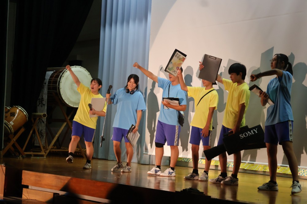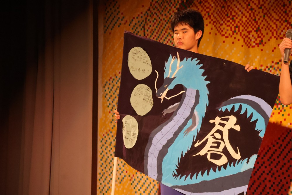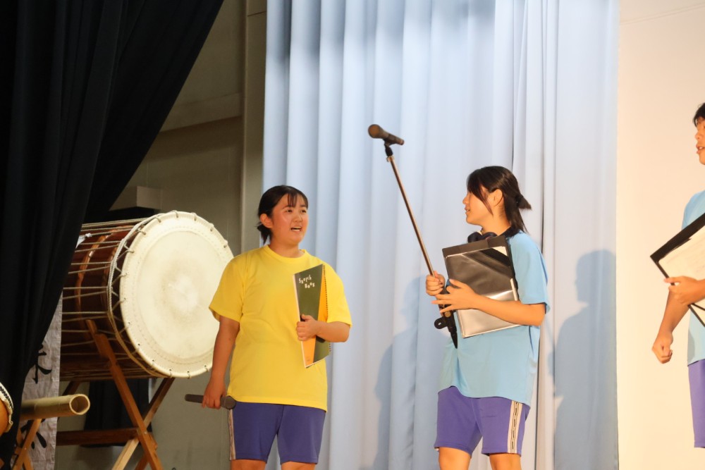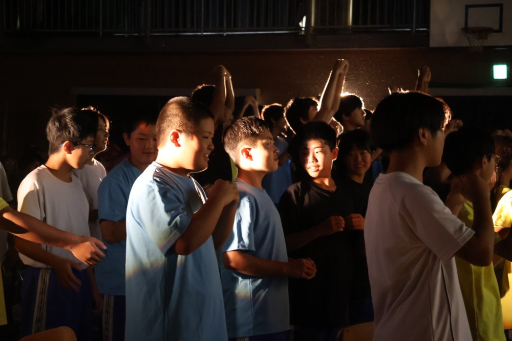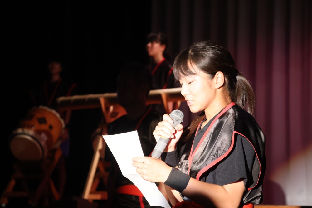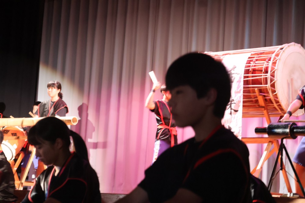 本日は可能な範囲で希珠祭速報をお伝えします。第1弾は開祭式です。午前8時30分、3年生による希珠太鼓演奏で第55回希珠祭が開幕しました。希珠太鼓に続いて生徒会によるアトラクション、ステージバック披露、系列旗紹介、開祭宣言と、どれも三珠中にふさわしいアットホームな雰囲気の中、行われ、素敵な開祭式となりました。IMG_0504