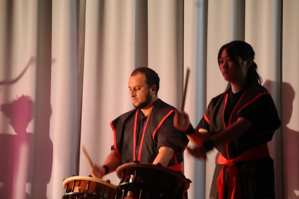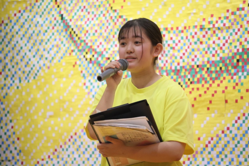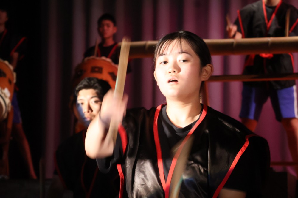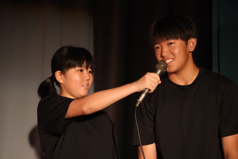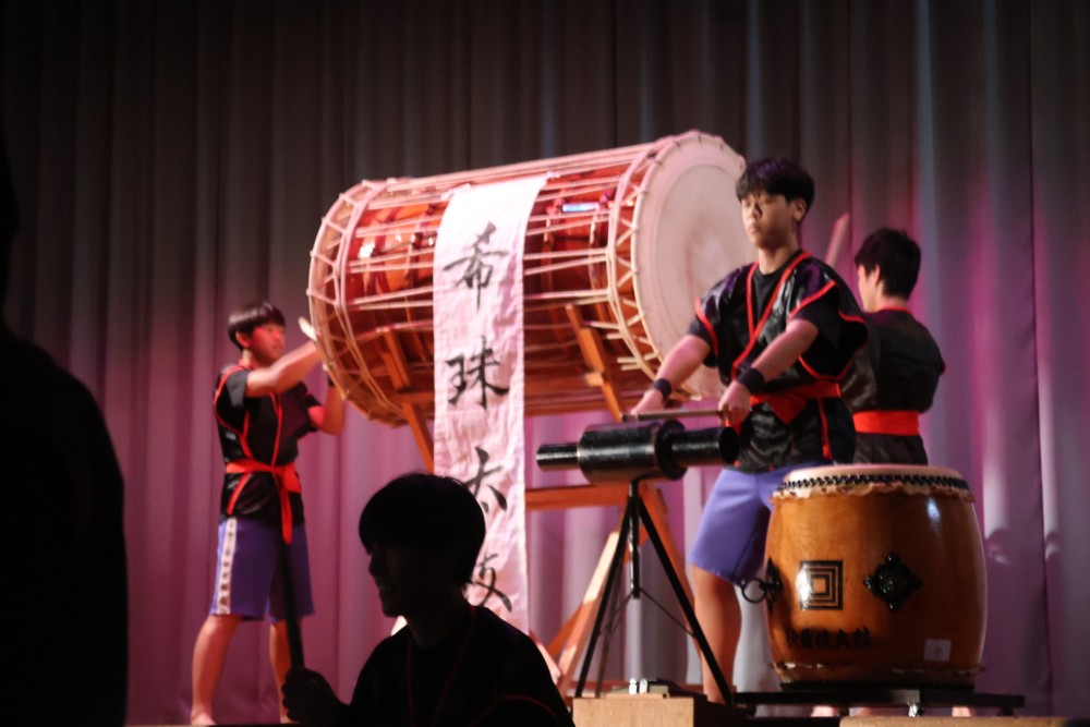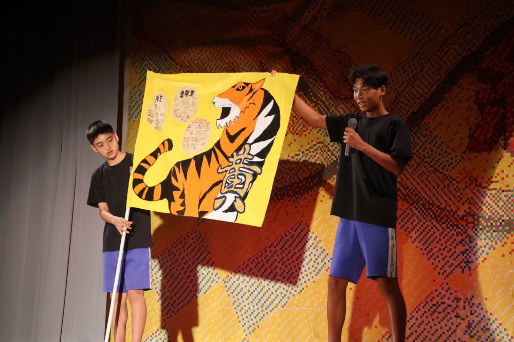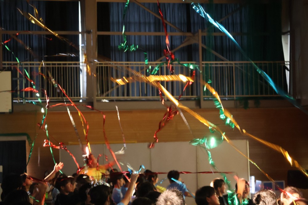 本日は可能な範囲で希珠祭速報をお伝えします。第1弾は開祭式です。午前8時30分、3年生による希珠太鼓演奏で第55回希珠祭が開幕しました。希珠太鼓に続いて生徒会によるアトラクション、ステージバック披露、系列旗紹介、開祭宣言と、どれも三珠中にふさわしいアットホームな雰囲気の中、行われ、素敵な開祭式となりました。IMG_0504