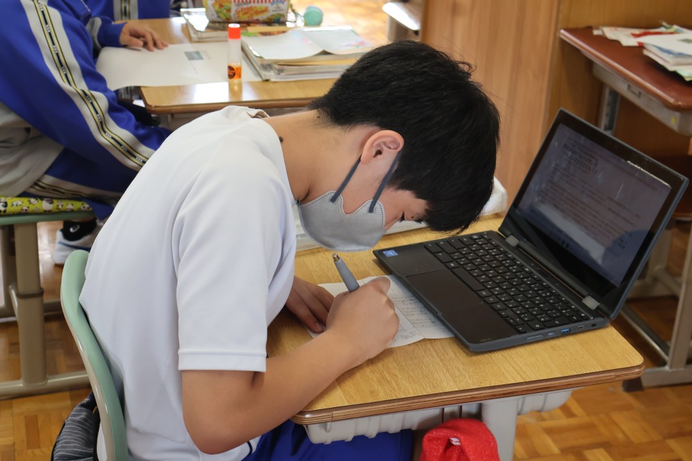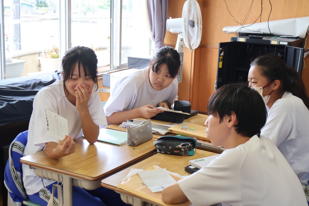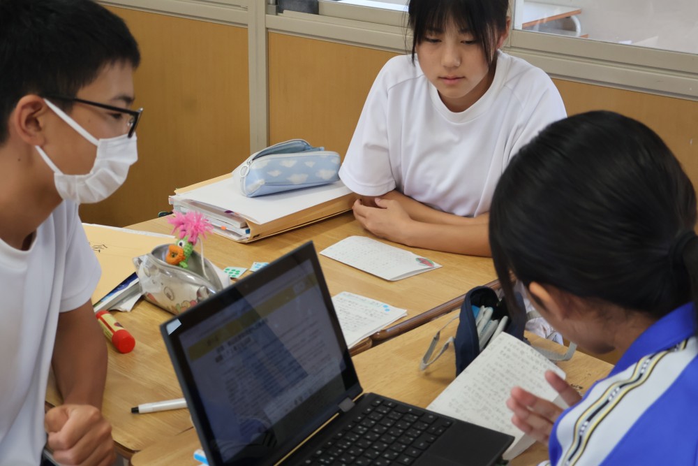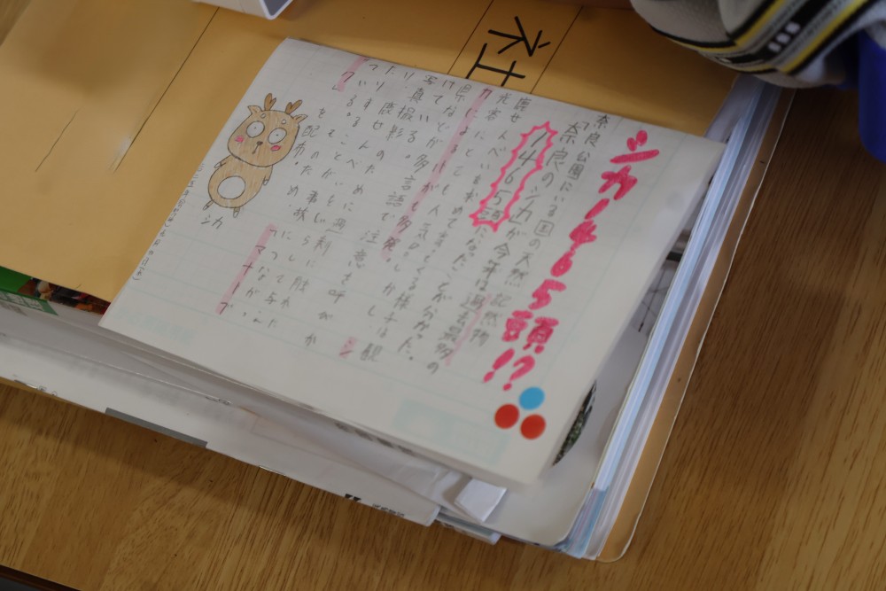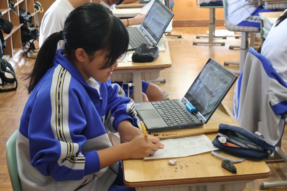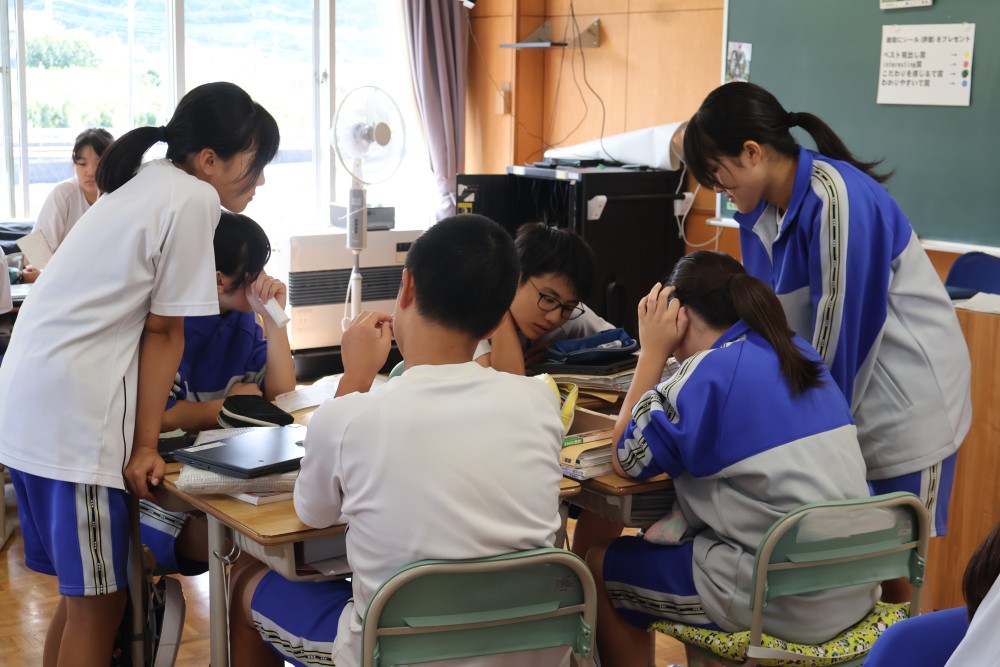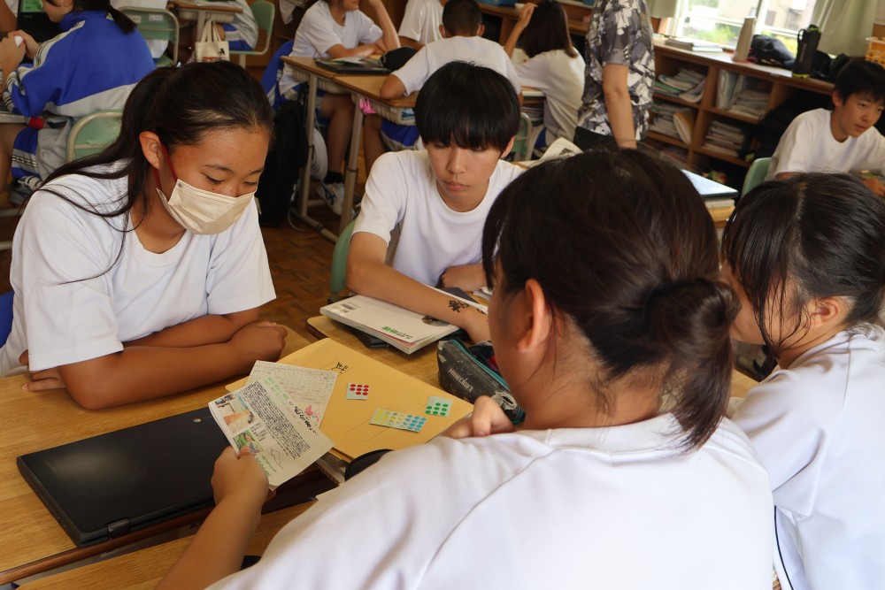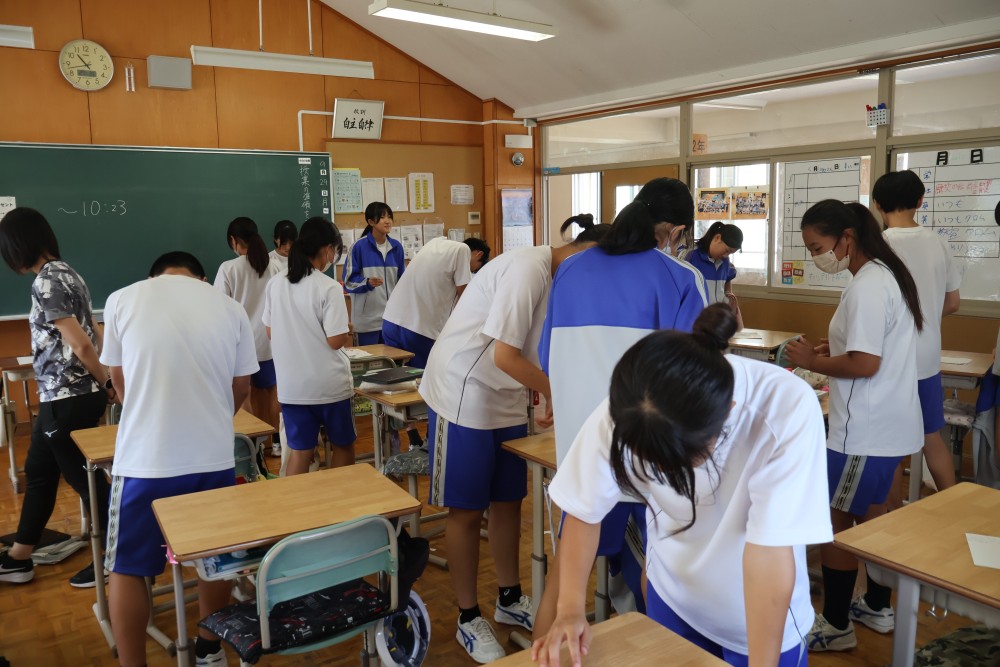 本日は2時間目、2年生社会の授業を参観しました。今日の授業の後半では、一人ひとりが『近畿地方』に関するテーマを決めて作った新聞を発表するとのことで、その様子を見学させてもらいました。琵琶湖に済む「ビワマス」や「大阪万博」、「奈良の鹿」など話題は多岐に渡っていて大変興味深く見させてもらいました。何より「いいなぁ」と思ったのは生徒たちが能動的に学習していることです。「知りたい」・「分かるようになりたい」という気持ちは学力UPの最良のエネルギーです。どんな学習に対してもそんな気持ちをもてるようになると良いですね。