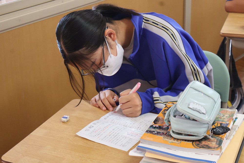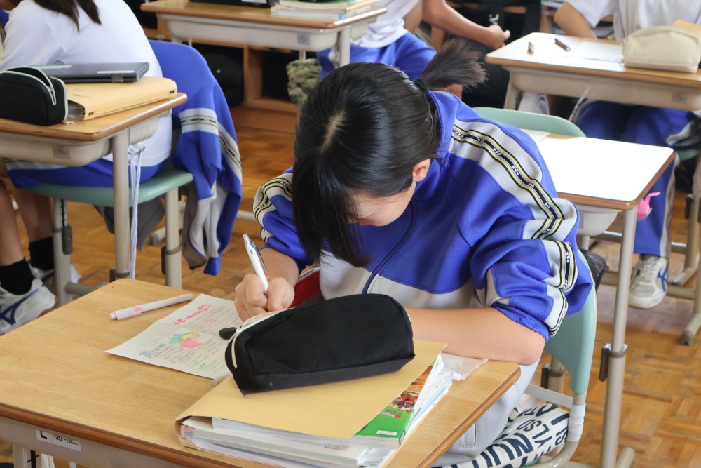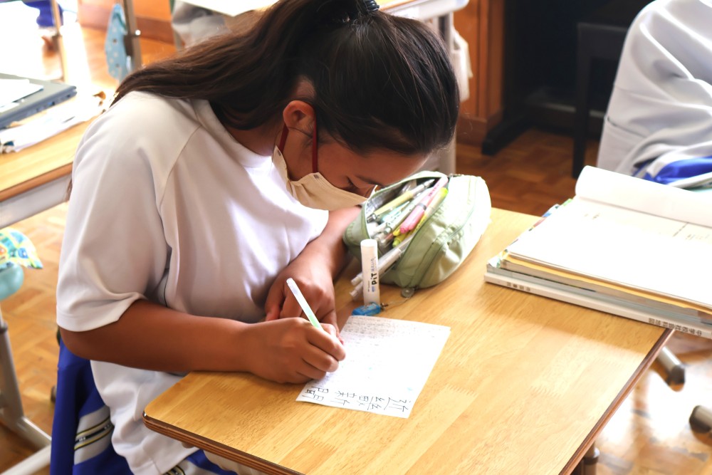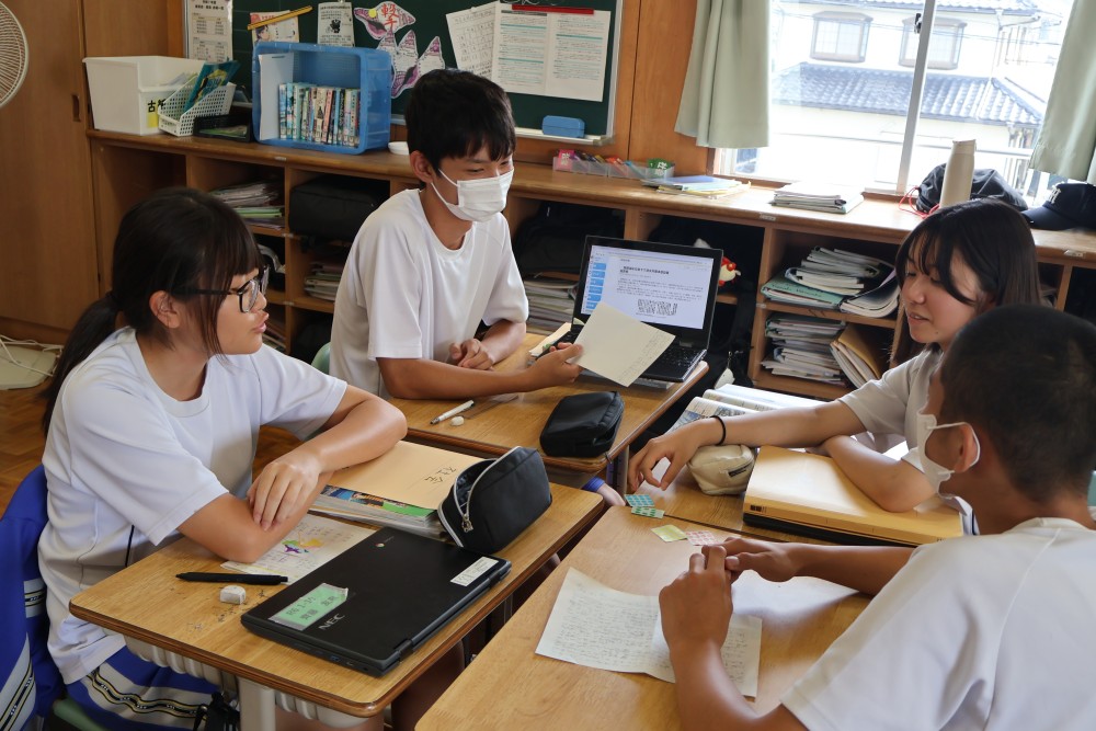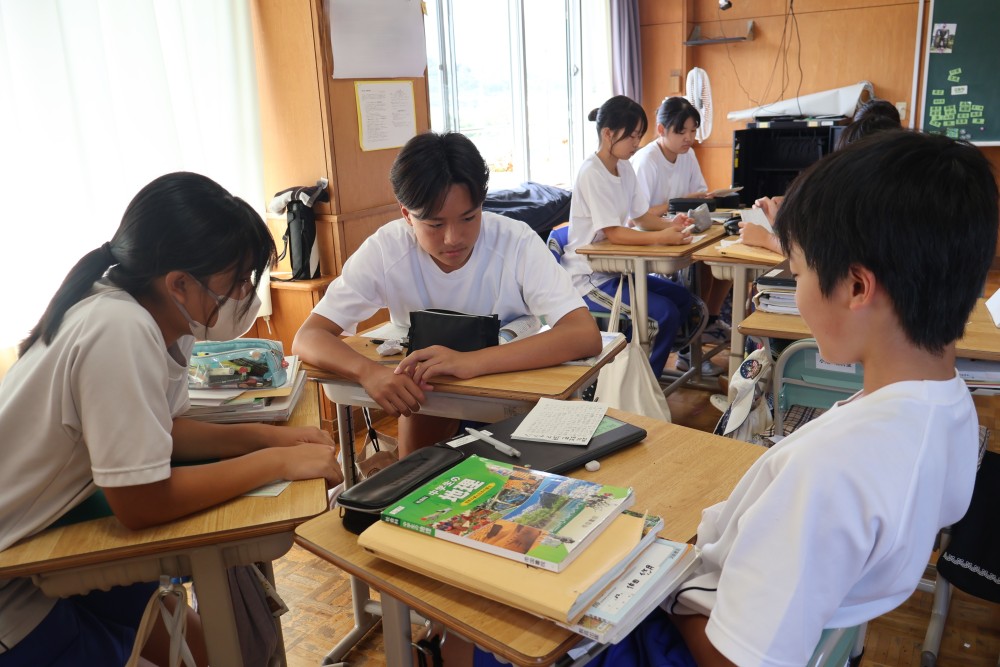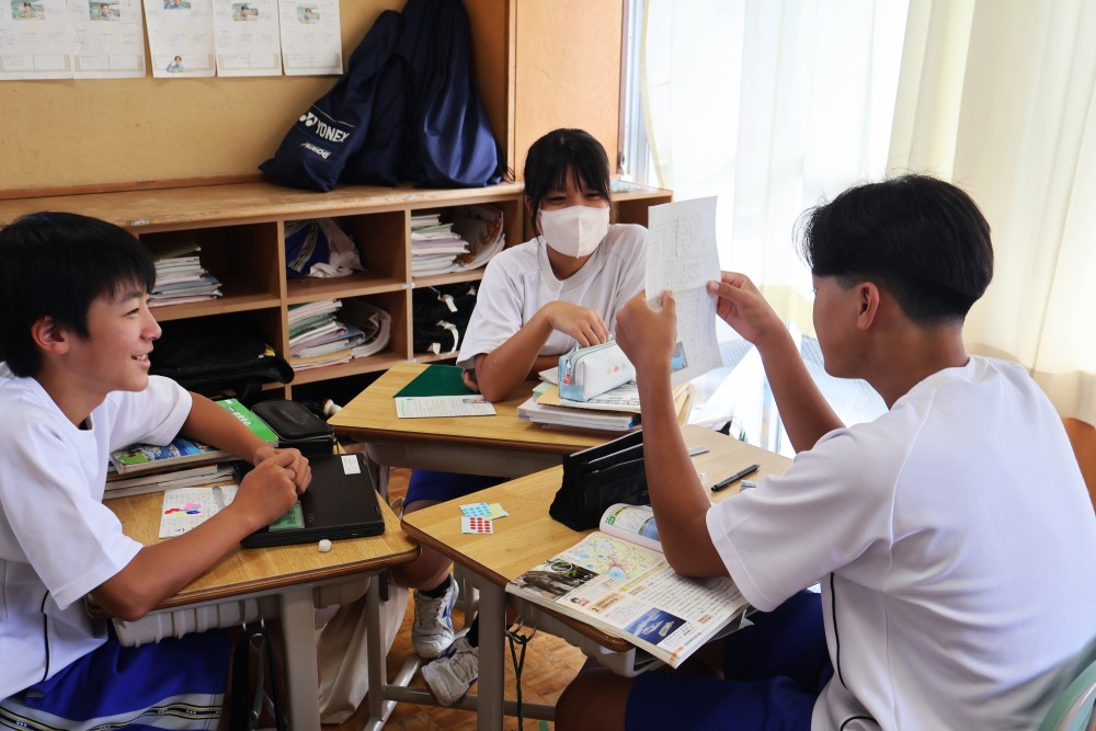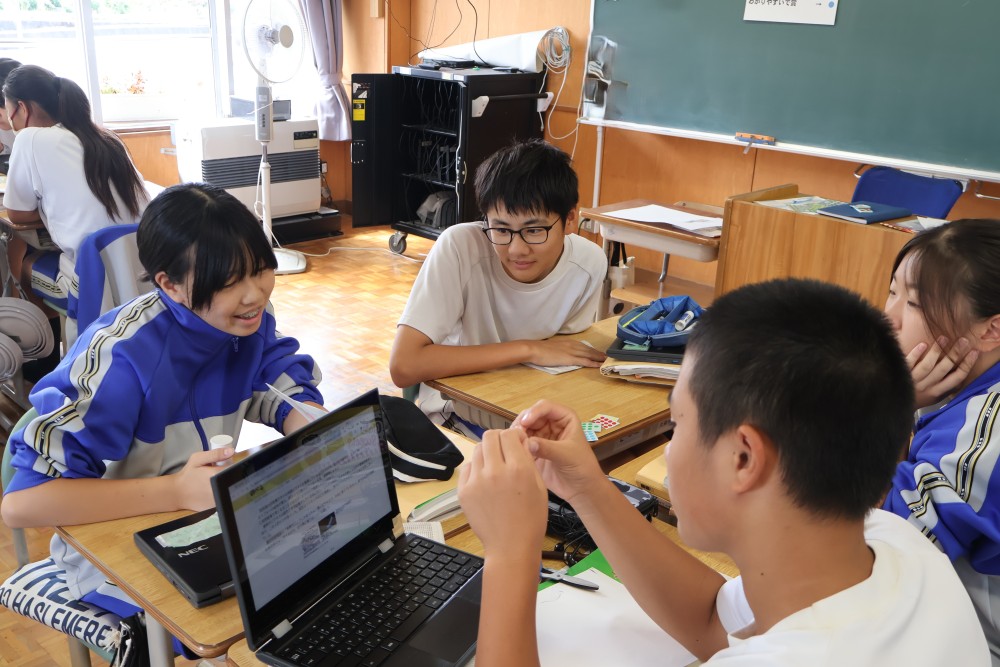 本日は2時間目、2年生社会の授業を参観しました。今日の授業の後半では、一人ひとりが『近畿地方』に関するテーマを決めて作った新聞を発表するとのことで、その様子を見学させてもらいました。琵琶湖に済む「ビワマス」や「大阪万博」、「奈良の鹿」など話題は多岐に渡っていて大変興味深く見させてもらいました。何より「いいなぁ」と思ったのは生徒たちが能動的に学習していることです。「知りたい」・「分かるようになりたい」という気持ちは学力UPの最良のエネルギーです。どんな学習に対してもそんな気持ちをもてるようになると良いですね。