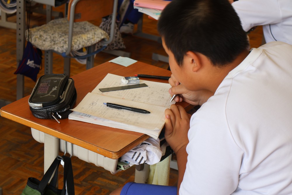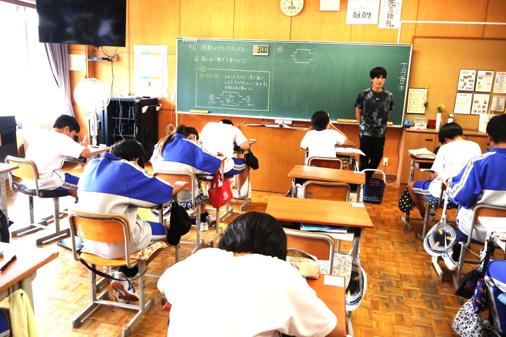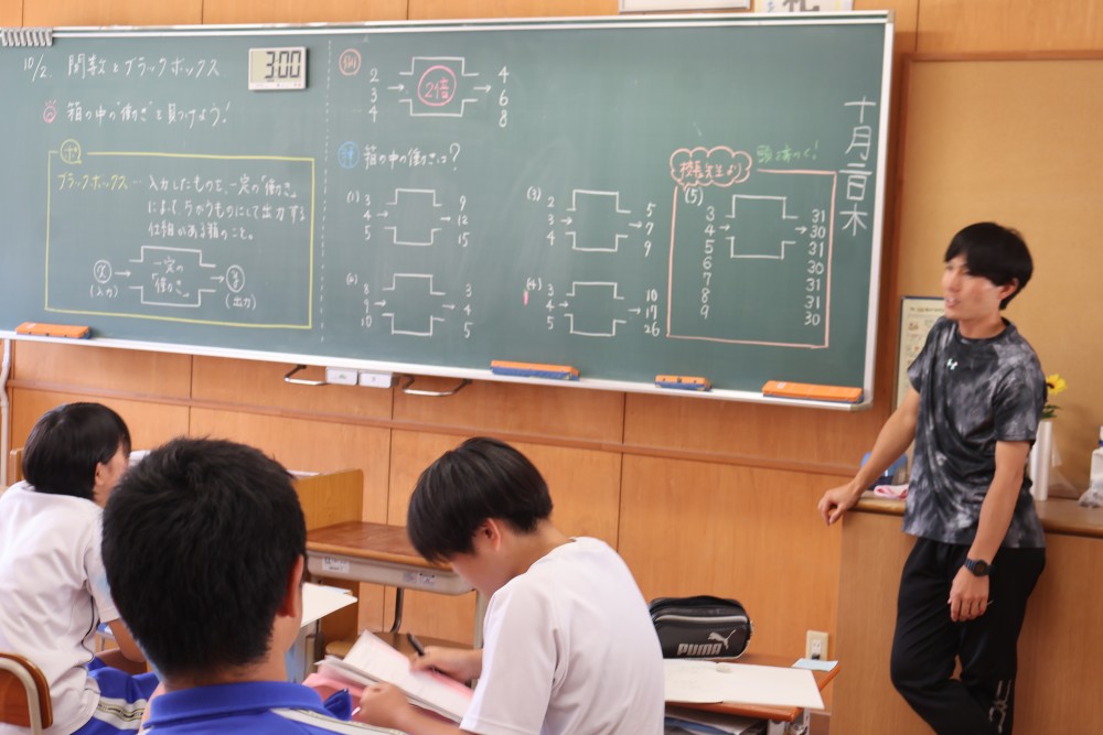 本日は4時間目の1年生・数学の授業を参観しました。1年生は今日から「関数」の授業に入ります。今日は導入で「BLACK BOX」の問題に取り組んでいました。「関数」というと「難しい!」とアレルギー反応を起こす人も見られますが、決してそんなに厄介者ではありません。むしろ、クイズ好きならきっと『面白い』と感じるいい奴です。今日の授業では私の「BLACK BOX」問題を出題させてもらったのですが、1年生に撃破されてしまいました。そこでHP上にもう1問、出題してみますので、興味のある人は挑戦してみてください。【超難問】1→1,2→2,3→2,4→3、5→2,6→4,7→2,8→4,9→3,10→4,11→2,12→6 ………… この規則で、120→? の?に入る数は何でしょう。