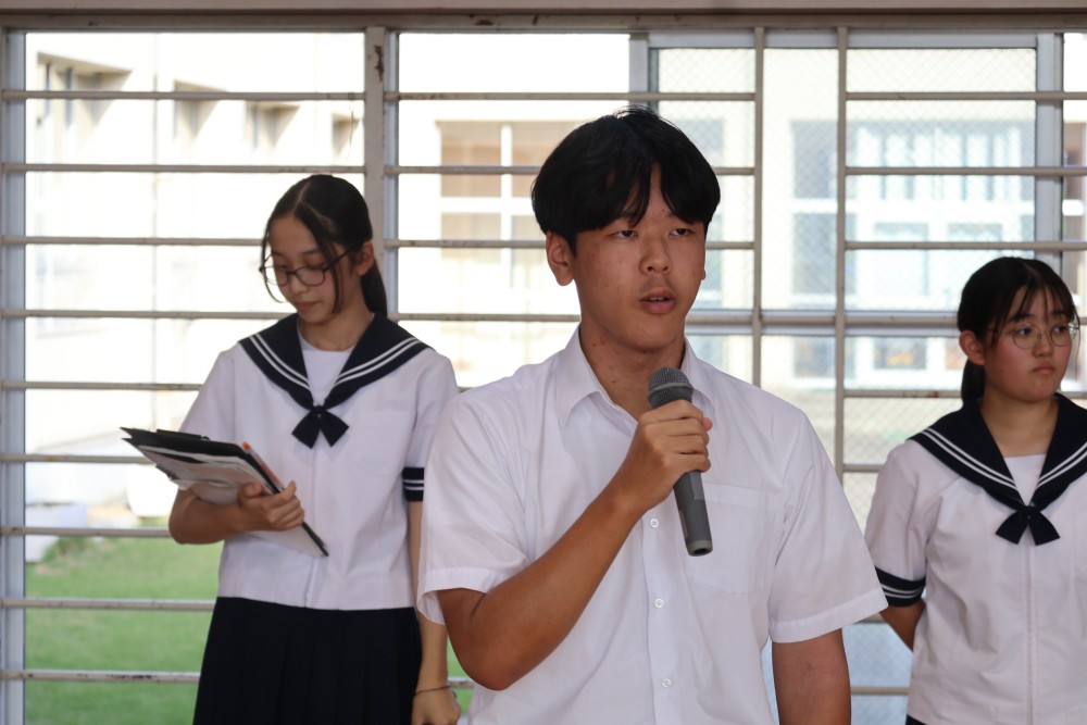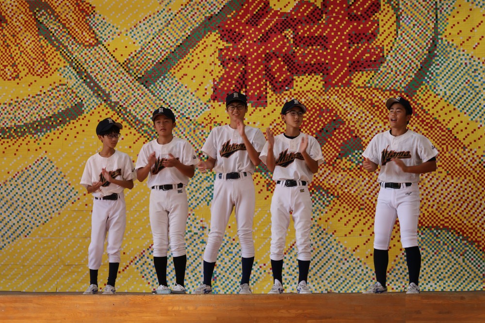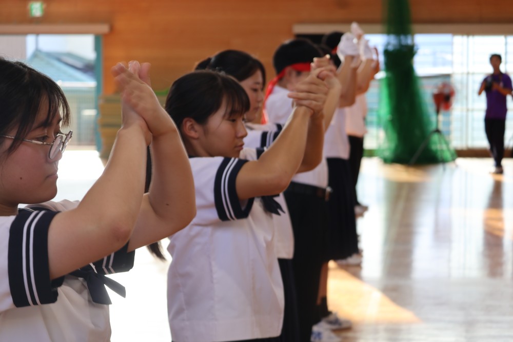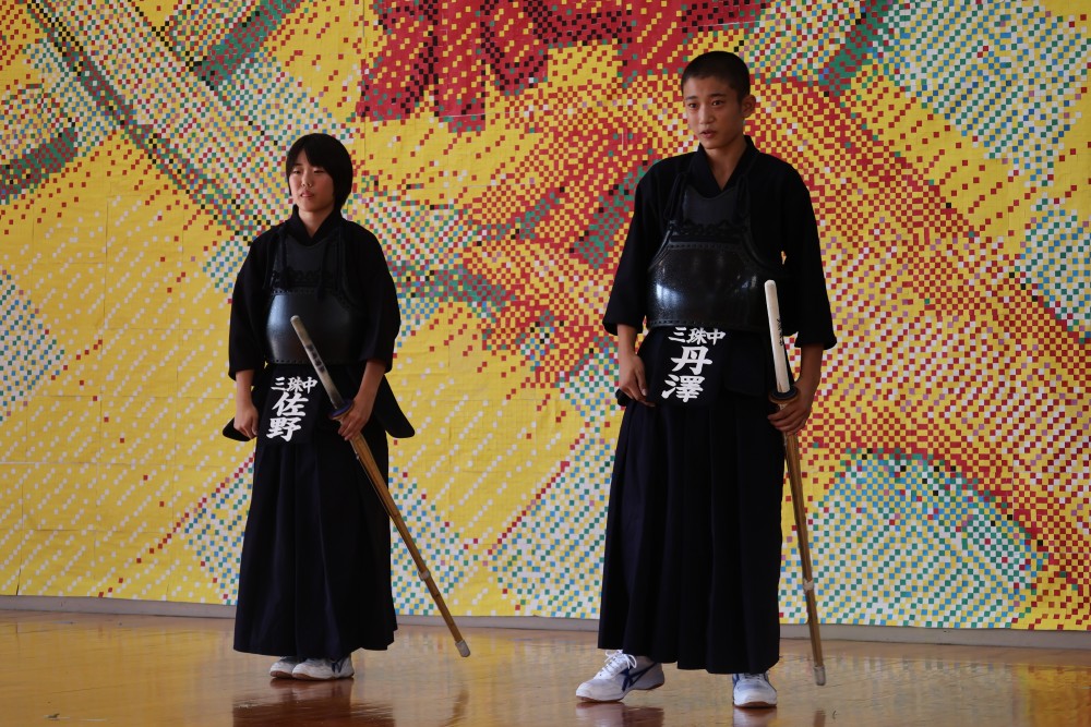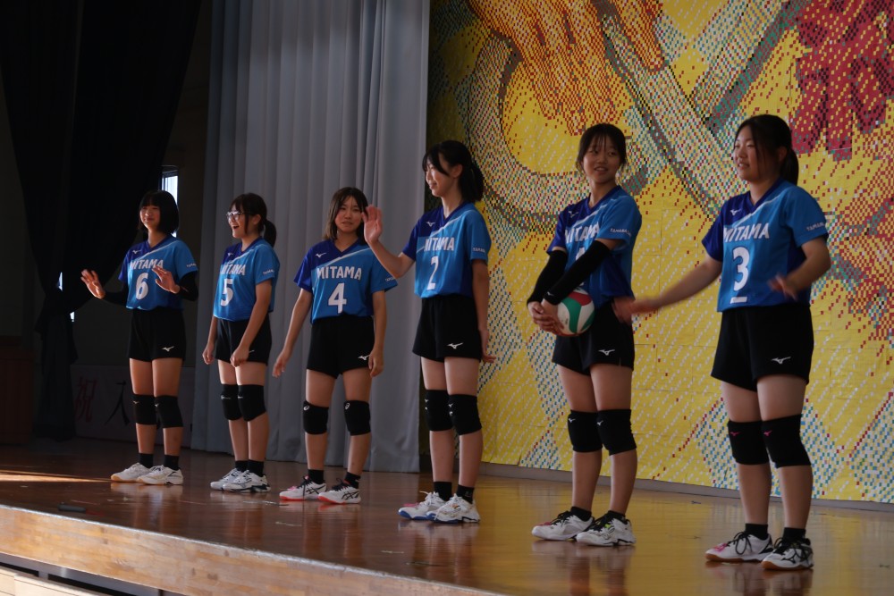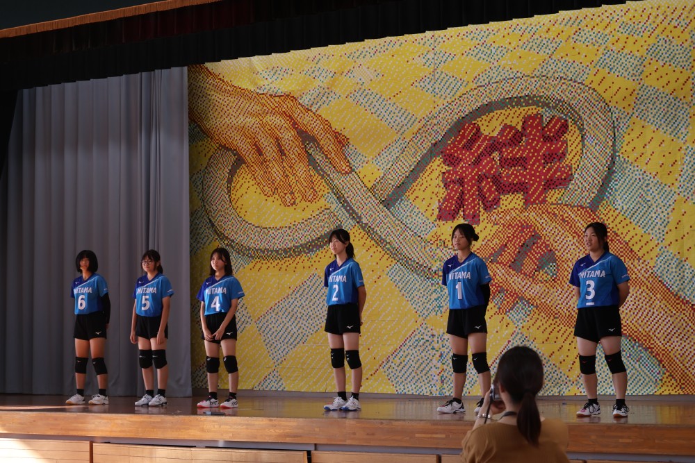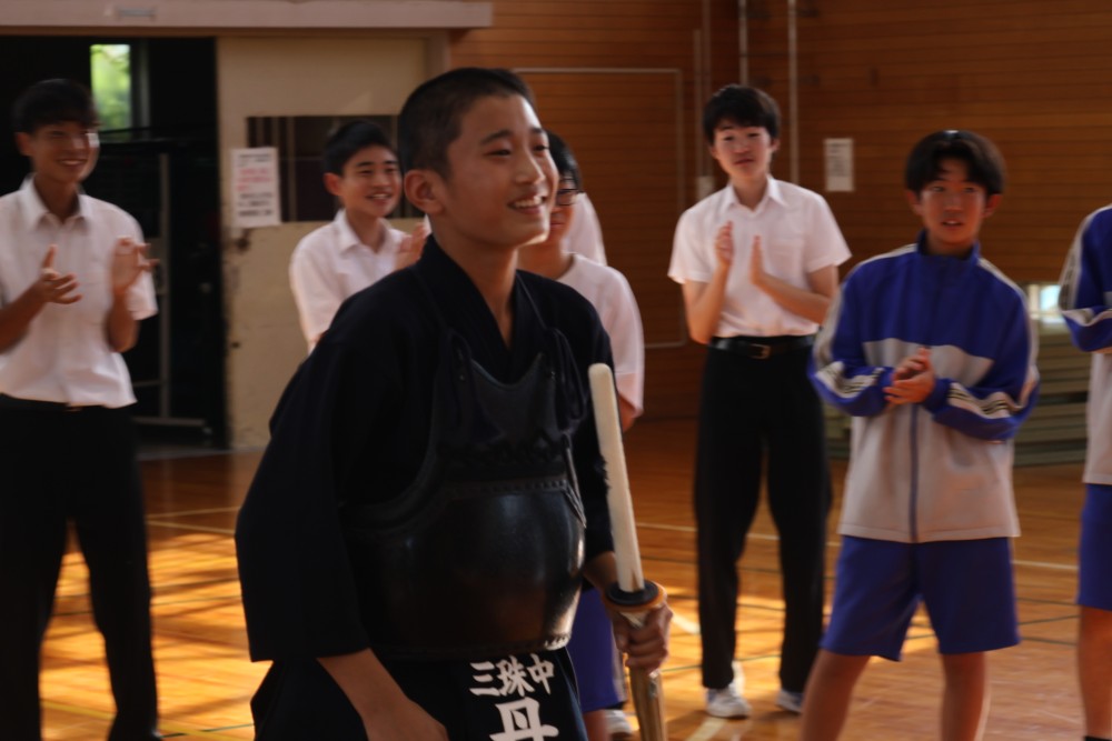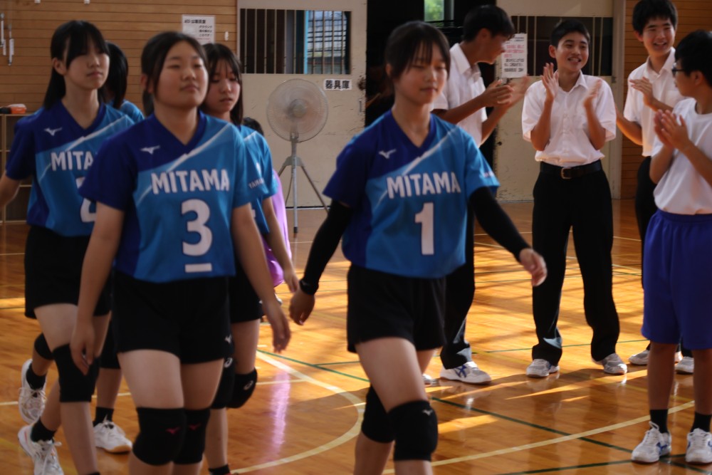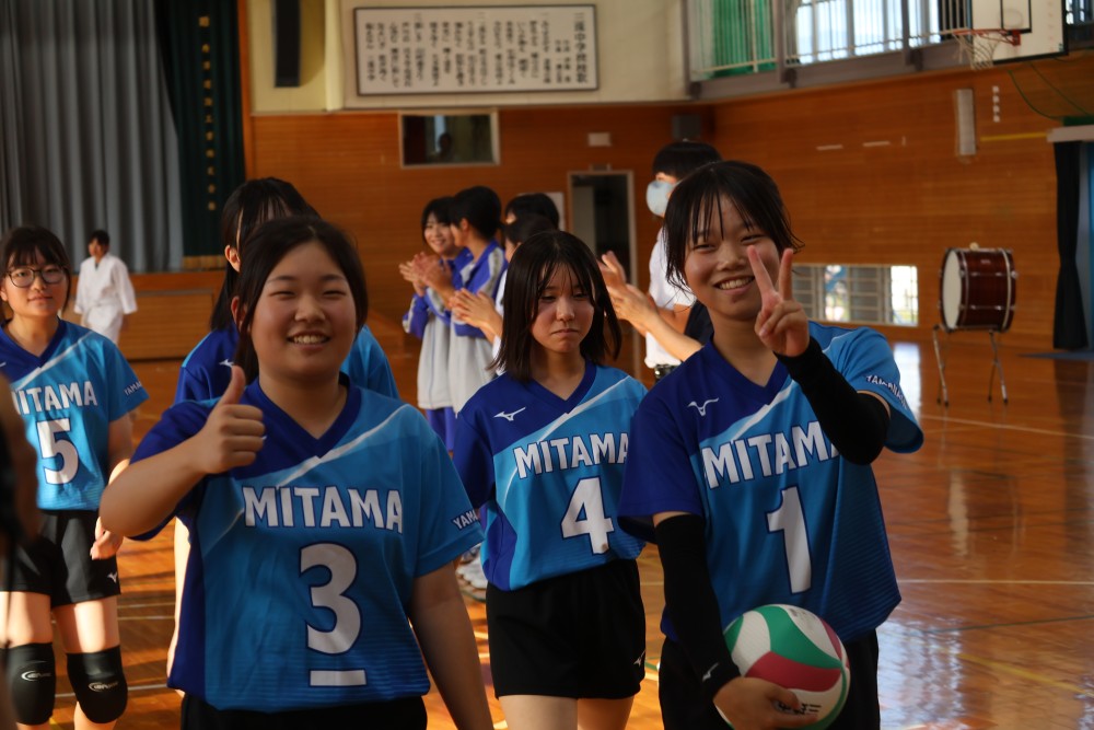地区新人大会が2日後に迫った本日の放課後、選手壮行会が行われました。新人大会に出場する1・2年生の運動部員に対して、3年生を中心に気持ちの入った温かい応援を送りました。過日、HPでお伝えした通り、10月7日(火)に大切な試験を控えた3年生が後輩たちのために放課後、応援の練習を頑張ってきました。3年生の思いをしっかり受けとめた1・2年生の態度も立派でした。3年生に対する選手たちの思いが野球部代表とソフトテニス部代表者による選手宣誓や全部員による決意発表に表れていました。そして、お礼の言葉では3年生に対する感謝の気持ちがはっきりと自分の言葉で語られていて、「とても良い壮行会になったなぁ」と感じました。三珠中らしい温かな壮行会を経て、いよいよあさっては地区新人大会。自分たちのもっている力を悔いの残ることなく発揮してきてください!(剣道部・柔道部は別に県新人大会に出場します!)