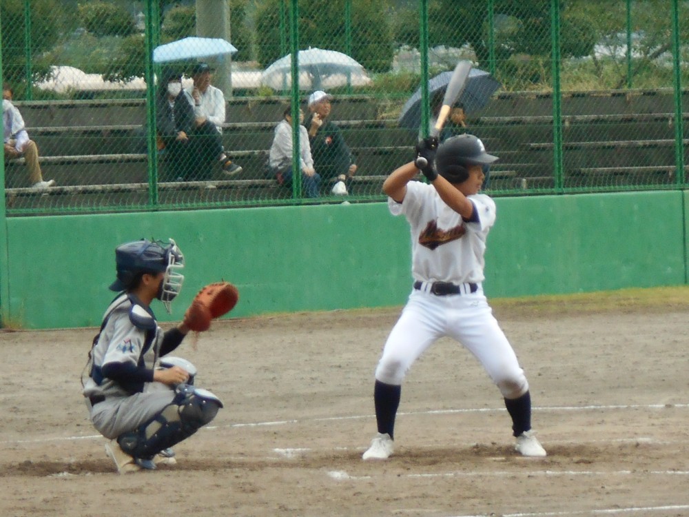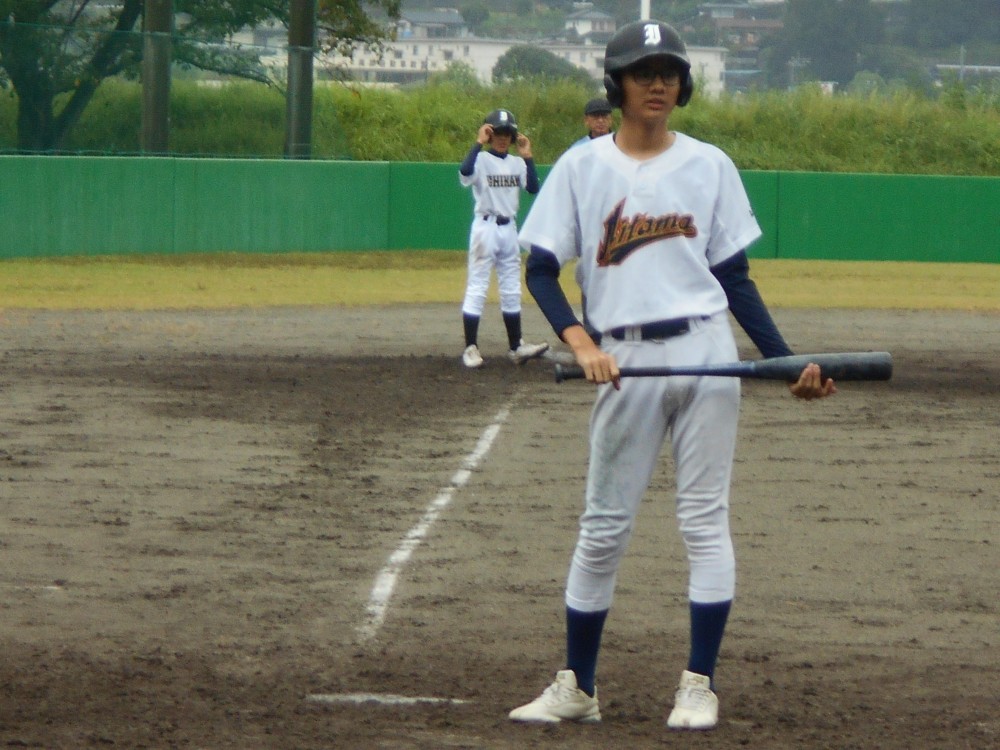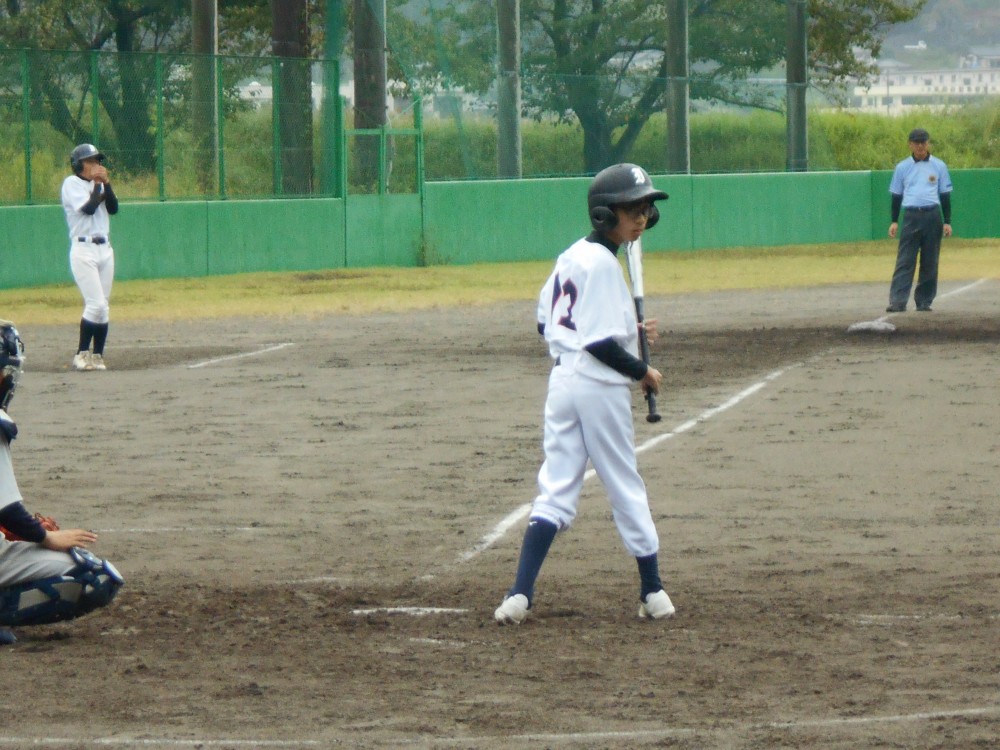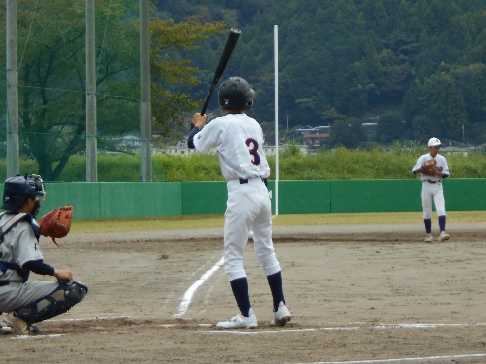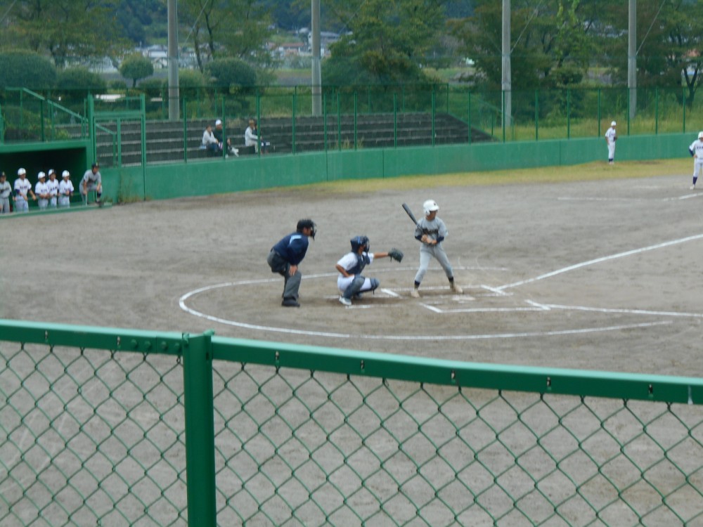 2日さかのぼった10月4日(土)、南部町アルカディア球場において峡南地区新人大会軟式野球の部が行われました。今大会の出場チーム2チームはいずれも合同チーム。三珠・市川・富士川合同チームと相まみえたのは身延・南部合同チームです。勝った方が10月18日に行われる県の上位大会の出場権を得る試合でしたが、序盤から相手ペースの試合となり、残念ながら勝利することはできませんでした。三珠中は、ほとんどの選手が中学校に入ってから野球を始めたという中で最後までよく頑張りました。今回の敗戦の悔しさをバネに春に向けて頑張っていきましょう。