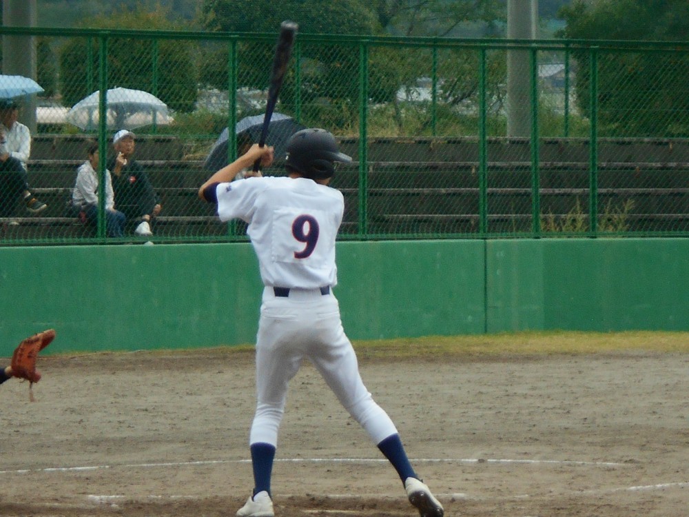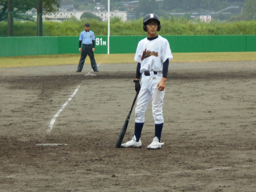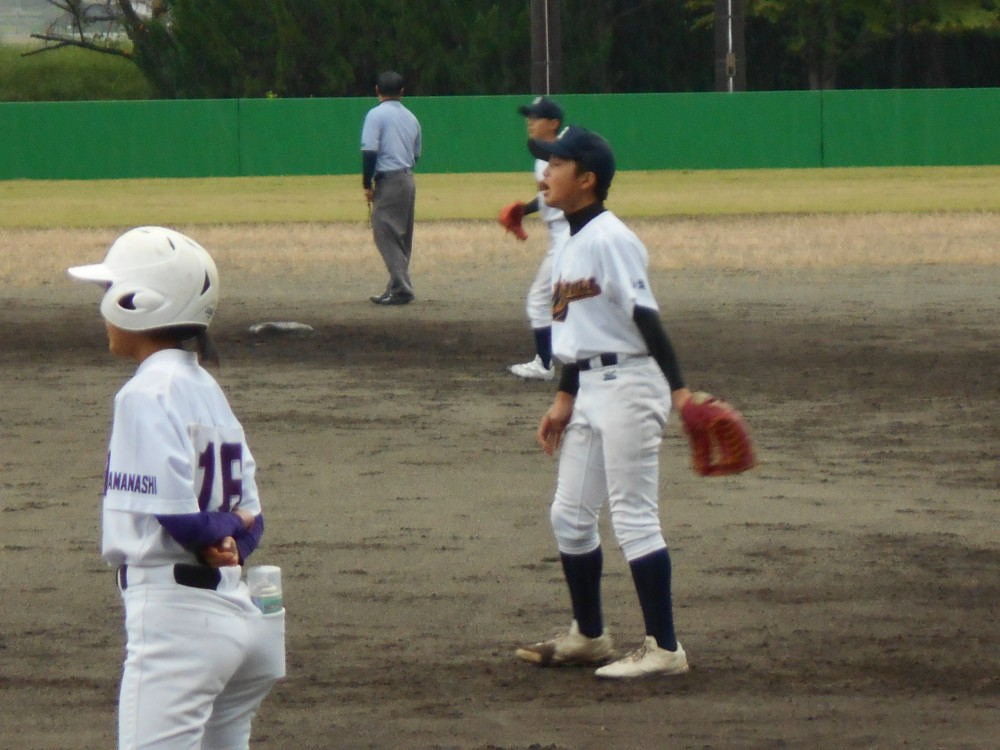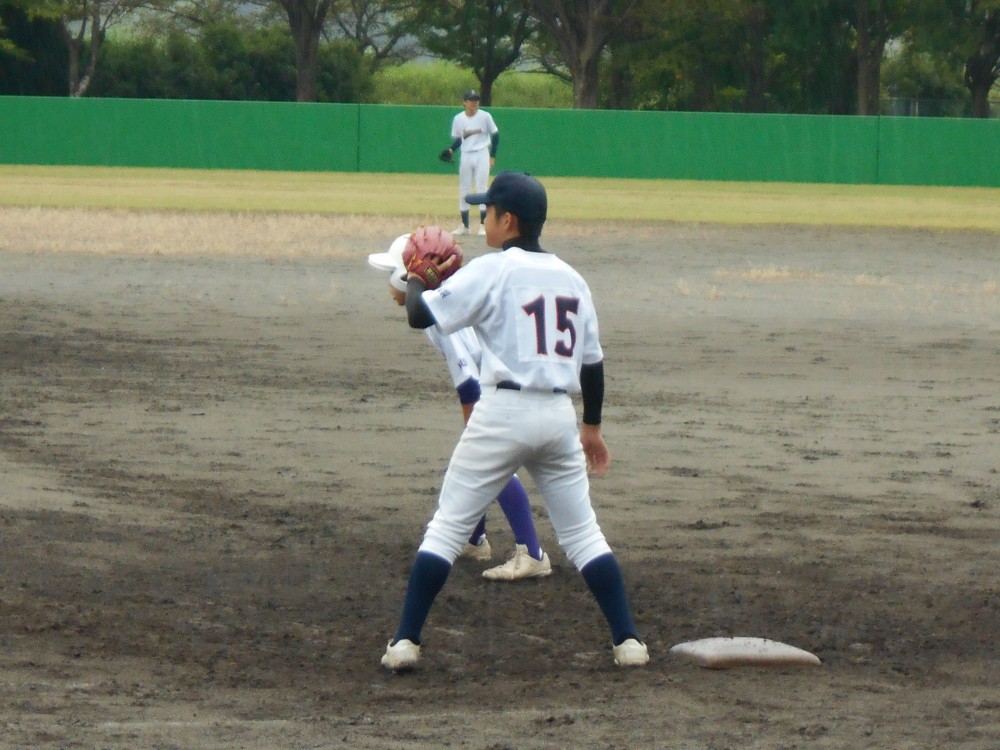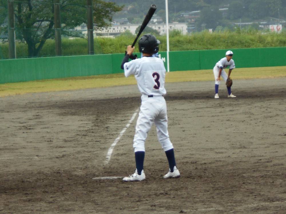 2日さかのぼった10月4日(土)、南部町アルカディア球場において峡南地区新人大会軟式野球の部が行われました。今大会の出場チーム2チームはいずれも合同チーム。三珠・市川・富士川合同チームと相まみえたのは身延・南部合同チームです。勝った方が10月18日に行われる県の上位大会の出場権を得る試合でしたが、序盤から相手ペースの試合となり、残念ながら勝利することはできませんでした。三珠中は、ほとんどの選手が中学校に入ってから野球を始めたという中で最後までよく頑張りました。今回の敗戦の悔しさをバネに春に向けて頑張っていきましょう。
