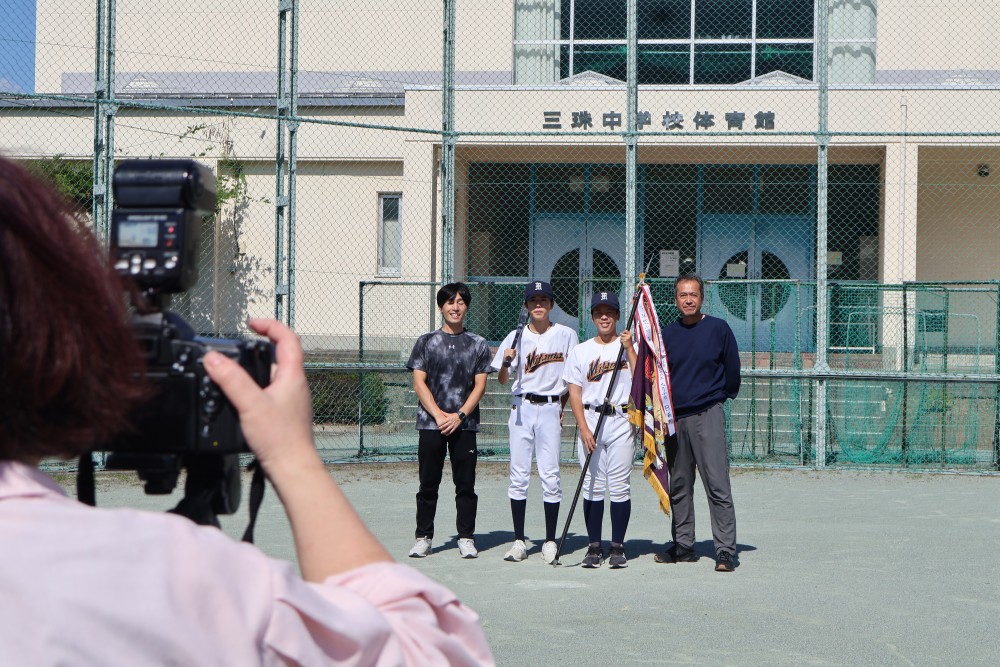 本日は爽やかな秋晴れとなりました。明日の上野・大塚両小学校の運動会にとっておきたいくらいの良いお天気です。そんな柔らかな日射しの中、3年生のアルバム用写真の撮影が行われました。本日は各委員会・生徒会本部に加えて、1学期に撮ることができなかった部活の写真撮影も行いました。昨年も感じたことですが、3年生の卒業を想像させるアルバム用写真撮影を見ると一抹の寂しさを感じると同時に、1日1日を大切にしていこうという思いになります。