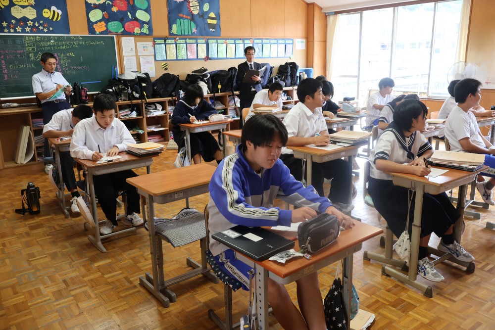 本日、今年度2回目のふれあい訪問が行われました。春の訪問時にも触れましたが、ふれあい訪問とは、峡南教育事務所の地域学力向上推進幹の先生が学校を訪れ、学校長との面談と授業参観等によって、各学校ごとの学力の向上の推進を図ることを目的に毎年、春と秋の2度行われる訪問のことを言います。本日は1年生の英語、1年杜の教室の数学を参観していただきました。今回の面談を通して推進幹の先生とお話したことを生かして、これからも三珠中生徒の学力向上に努めていきたいと思います。