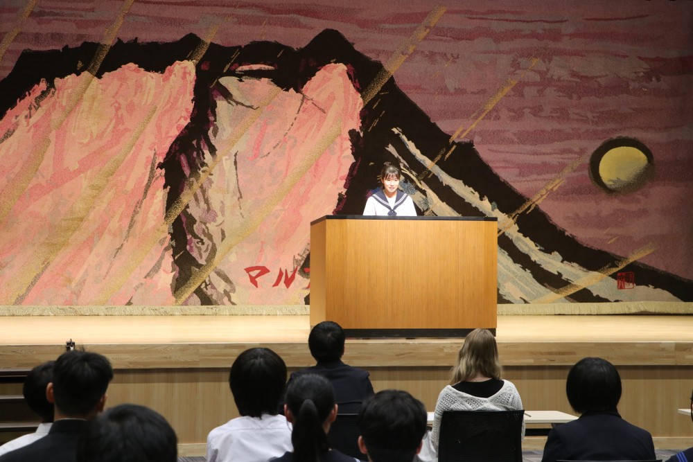 本日の午後、市川三郷町生涯学習センターにて、令和7年度峡南地区英語暗唱大会が行われました。三珠中からは1年生2名、2年生1名、3年生1名が出場しました。過日、ホームページでお伝えした通り4人ともこの日のために本当によく頑張ってきました。私は職業柄、人前で話をすることが多いのですが、何度話をしても緊張してしまいます。特に、この日のようなたくさんの人が集まる場所では、事前にたくさんの練習をしていたとしても、いざ前に立つと頭が真っ白になってしまうなんてこともよくあります。しかし、三珠中の4名は練習通り、いや練習以上に素晴らしい発表を、このような多くの人の前でやってのけました!暗唱だけでなく、表情豊かな表現に身振り手振りも交えて、本当に素晴らしかったと思います。4名に最大限の賛辞を送ります!本当によく頑張りましたね。