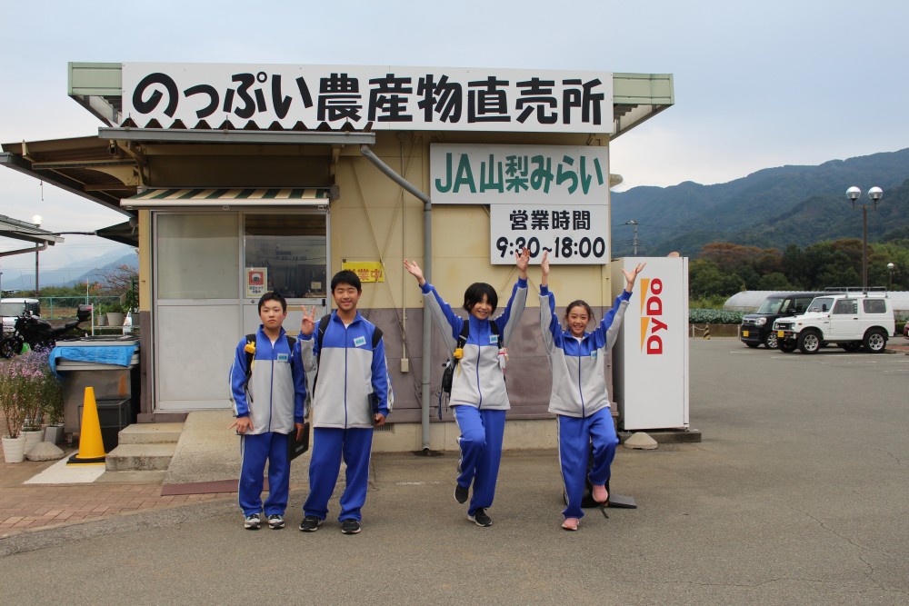時は少し巻き戻って、先週の金曜日、1年生が町内めぐりを行いました。午前8時20分、旧三珠支所を出発し、午前中は❶桑郷、❷LaLa mizunosato を全体見学、午後は班別自主見学を行いました。町の人の温かさに触れ、生まれ育ったこの市川三郷町のことを一層好きになってもらえたら幸いです。