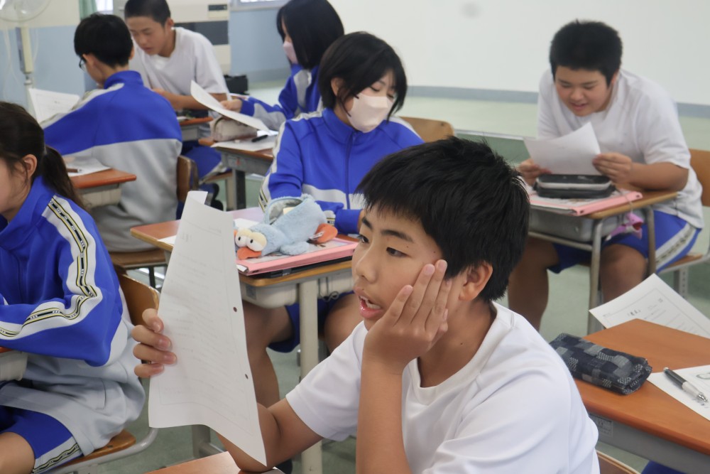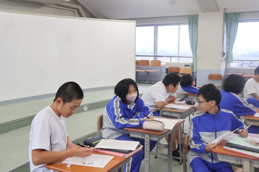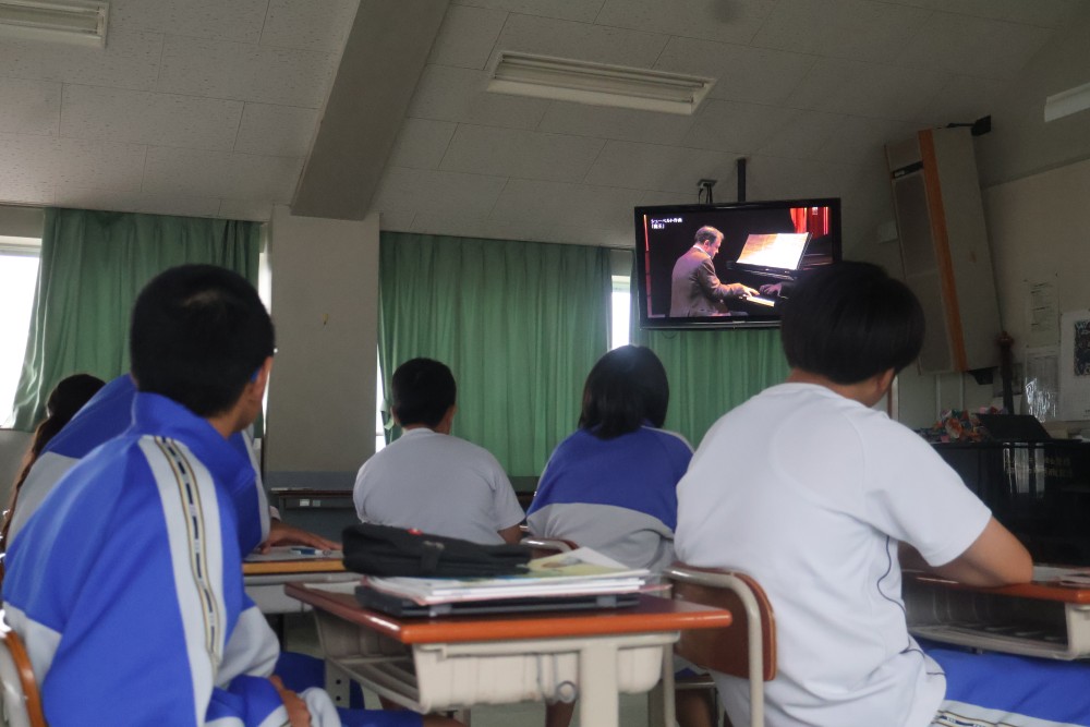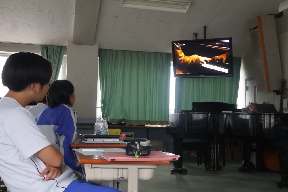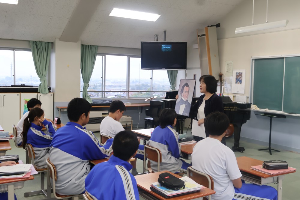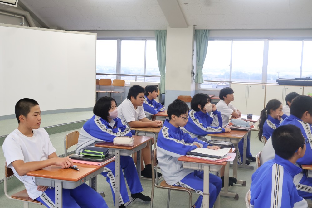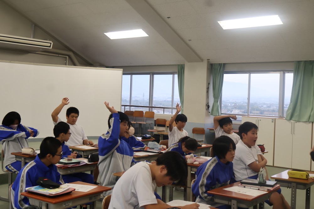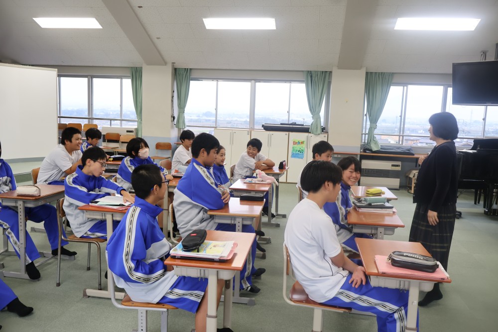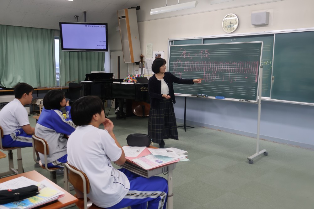 本日、最後に参観したのは6時間目の1年音楽です。金曜日の6時間目の授業は、その週最後の授業ということで「疲れ果てて元気が感じられない」ということもよく見られがちです。しかし元気が売りものの三珠中1年生は集中して授業を頑張りました。この日の授業で扱った題材は、ゲーテ作詞・シューベルト作曲の「魔王」です。「なぜ『魔王』は、今も昔も聞き手を惹きつけるのか?」について、歌詞を読み合ったり鑑賞をしたりする中で、みんなで考えました。1年生の「いいなぁ」と思うところは、何か質問されれば多くの人の手が挙がるところです。この授業でも先生の質問に対してたくさんの手が挙がっていました。「これって本当の話ですか?」、「これ(魔王)歌いますか?」など思わずほっこりする発言も飛び出し、終始良いムードの中、授業は進んでいきました。これからの学習の中で、魔王の魅力について、より深く考えていきましょう。
