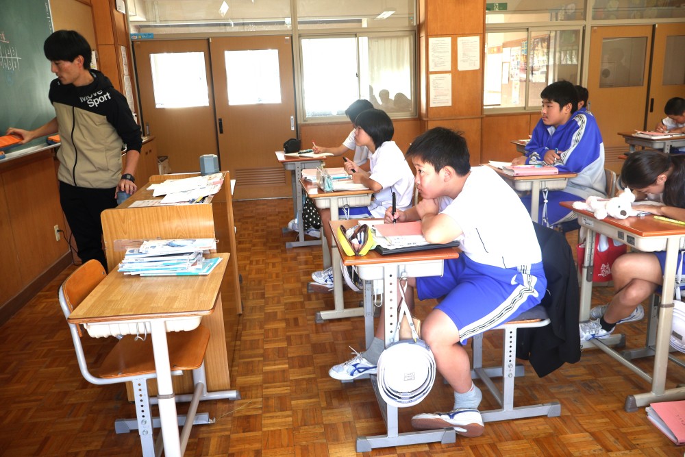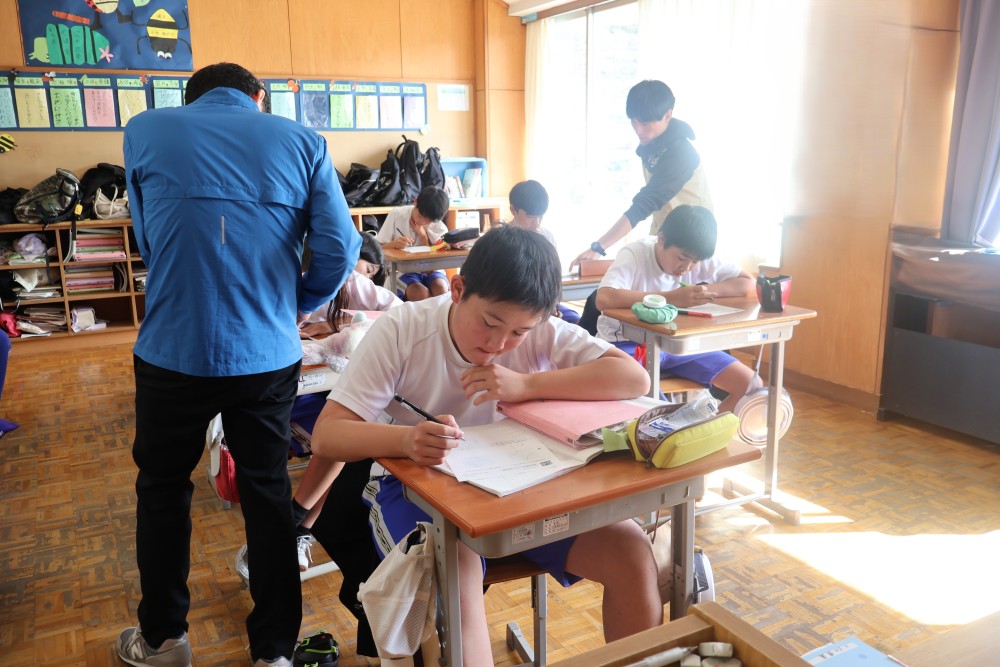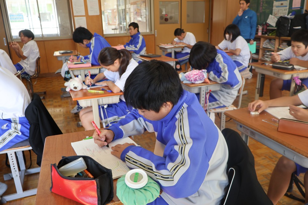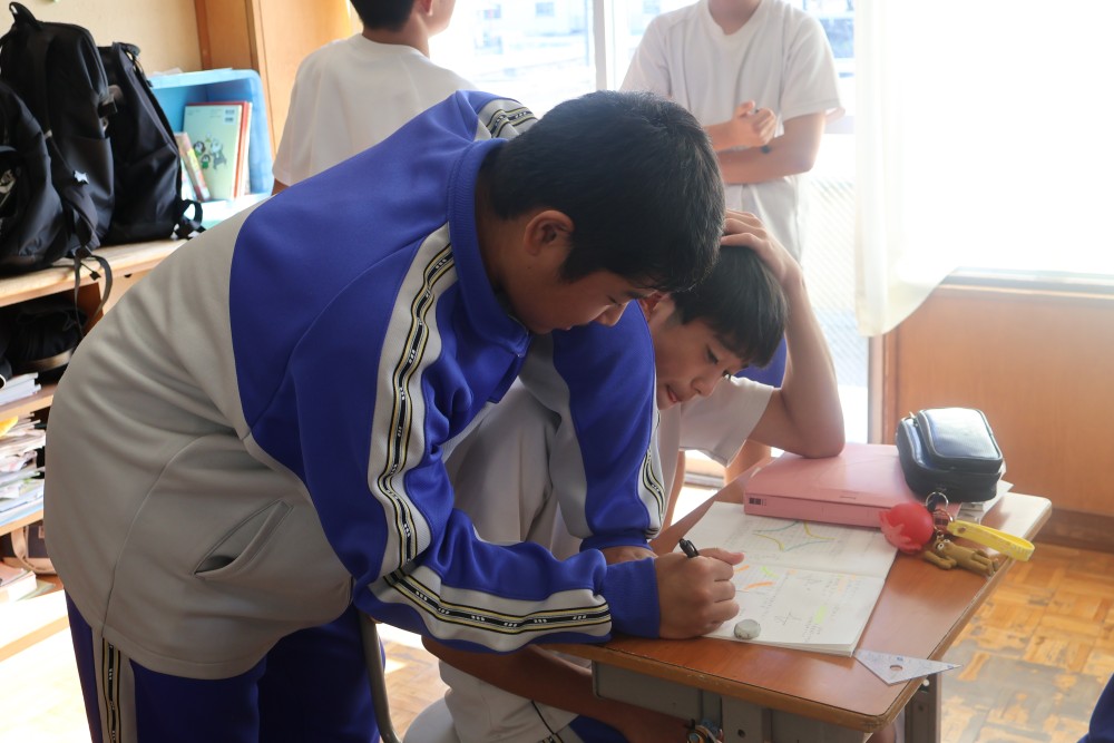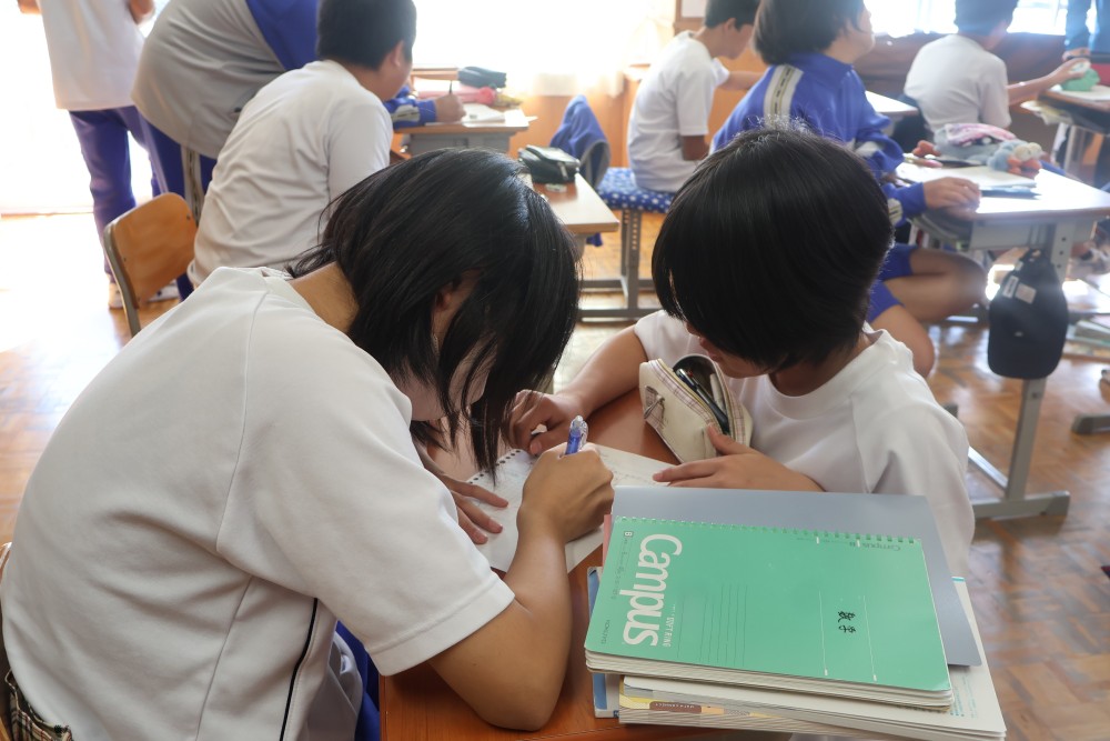 本日は4時間目の1年・数学の時間を参観しました。授業では反比例のグラフ(双曲線)のまとめを行った後、反比例のグラフの式を求める練習を行いました。誰もが真剣に取り組んでいて、大変良い雰囲気の授業でした。グラフ上の1点を選び、そのx座標とy座標を「y=a/x」の式に代入し、1次方程式を解いてaの値を求めることをみんなができていたように思います。「分かった」と感じたことは繰り返しの反復練習をすることで確かな力になります。授業で分かったことを家でもう1度やってみる家庭学習も効果的ですよ。