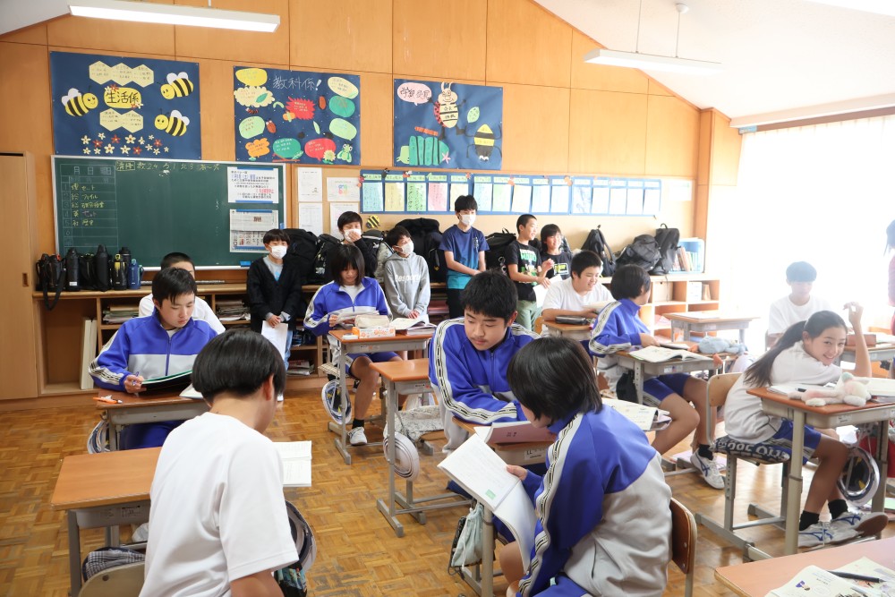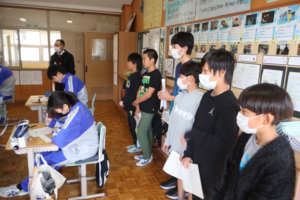 本日の午後、上野小・大塚小の6年生を対象にした一日入学が三珠中で行われました。一日入学は昨年までは年明けに保護者同伴で行っていましたが、「少しでも早い時期に6年生に三珠中のことを知ってもらいたい」という思いから、今年はいつもより2か月ほど早いこの時期に、両小学校6年生担任の先生の引率のもと実施することにしました。一日入学では、①各学年の授業風景の見学、②校舎内の施設見学、③部活動見学、④先輩と語る会の主に4つの内容を、中学生に協力してもらって6年生に少しでも中学校のことを知ってもらおうと行いました。6年生のみなさん、今日の体験を通して三珠中学校のことを知ることはできたでしょうか?また、先輩として6年生を案内したり、中学校生活に関わる質問に答えてくれた8名の中学生、ありがとうございました。みなさんの力のおかげで有意義な一日入学とすることができました。