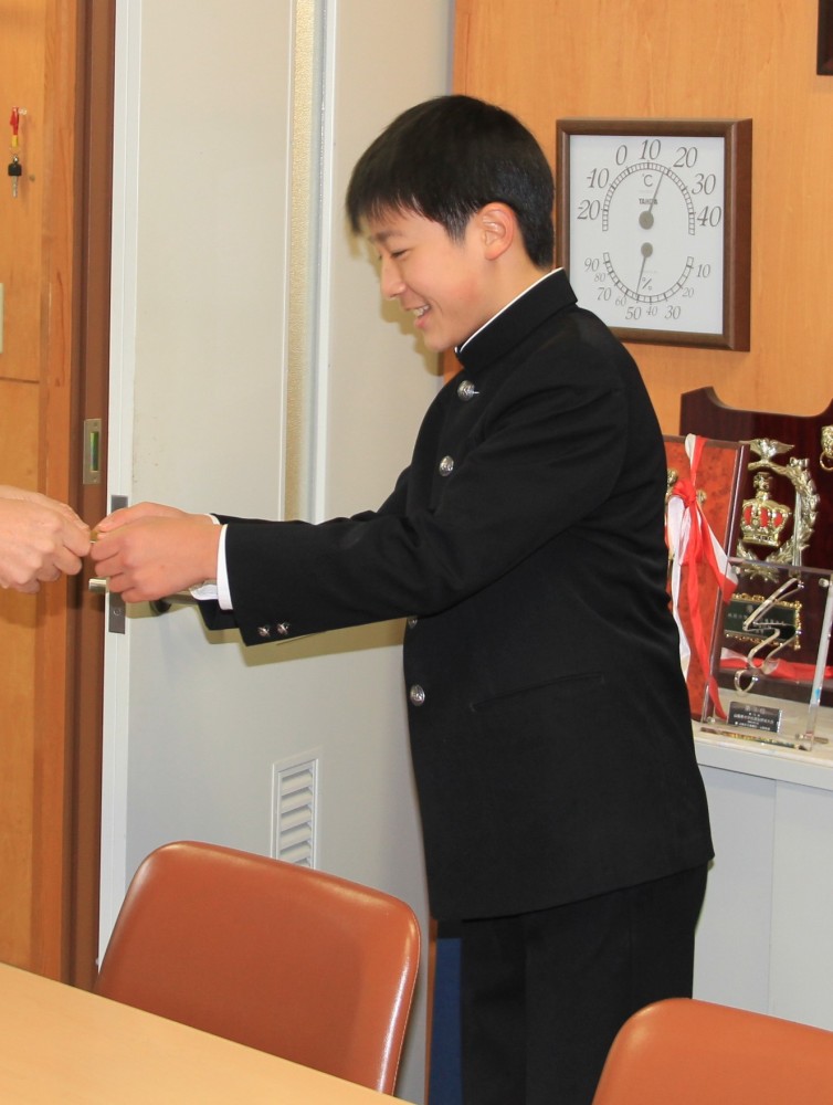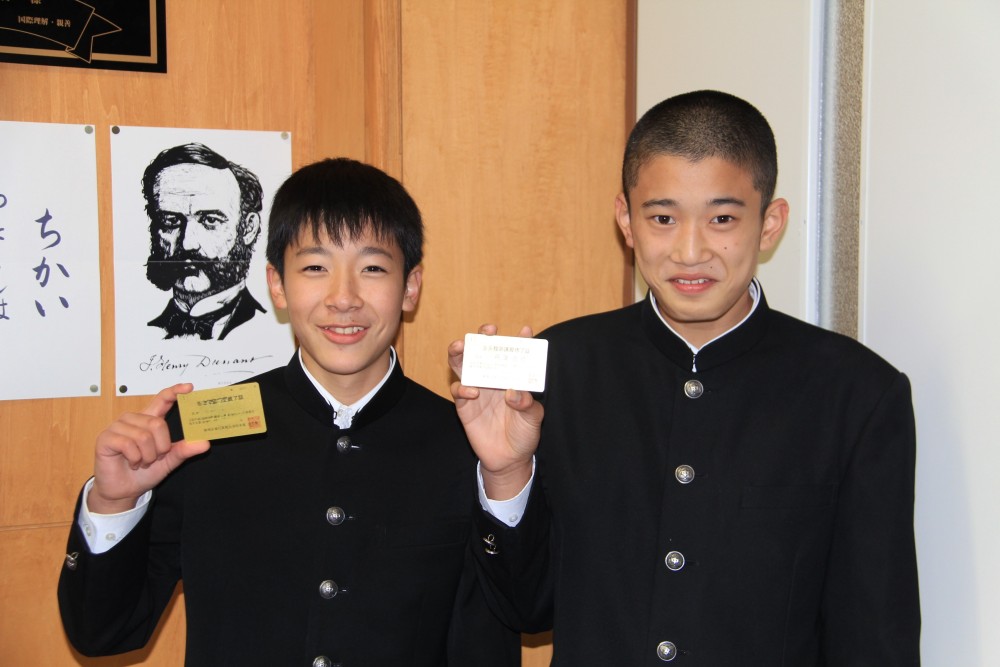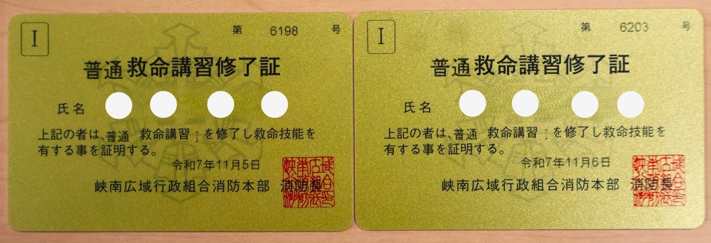 11月5日・6日に行った職場体験学習で峡南広域行政組合消防本部北部消防署で体験をした2年生2名に、消防署から「普通救急講習修了証」が届き、本日、渡しました。「普通救急講習修了証」は消防署などが実施する普通救命講習(心肺蘇生法やAEDの使い方など)を受講し、内容を習得したことを証明する書類で、緊急時に応急手当を行うために必要な知識と技能を身につけたことを公的に示すものです。2名のうち1名の生徒の将来の夢は消防士。心も身体も健康に成長して、将来、人々のために活躍する日が来ることを願っています。