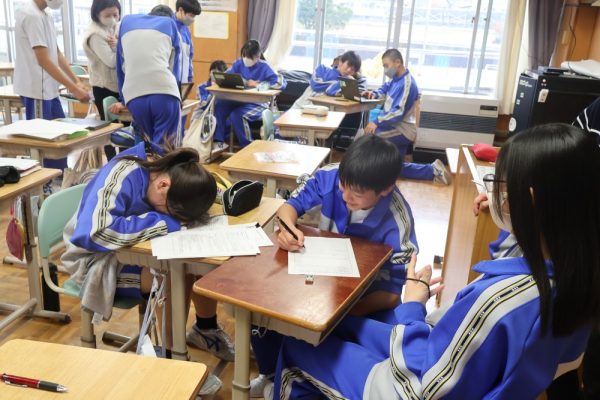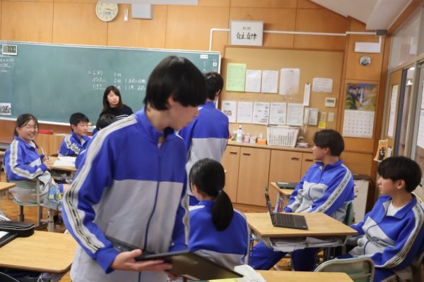 本日は6時間目の2年生の授業も参観しました。本日、令和8年度三珠中学校生徒会本部役員選挙の立候補者が出そろい、明日には告示第二号が発表されます。本格的な選挙戦を前に、今日は各候補ごとに選挙前の準備を行いました。立候補者は選挙公報に載せる公約を考えたり、ポスターやたすきを手掛ける人など、良い雰囲気の中、学年総出で協力していました。各候補者にとって有意義な選挙戦となることを願っています。