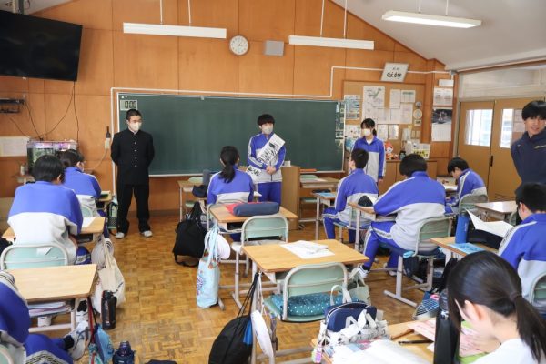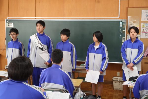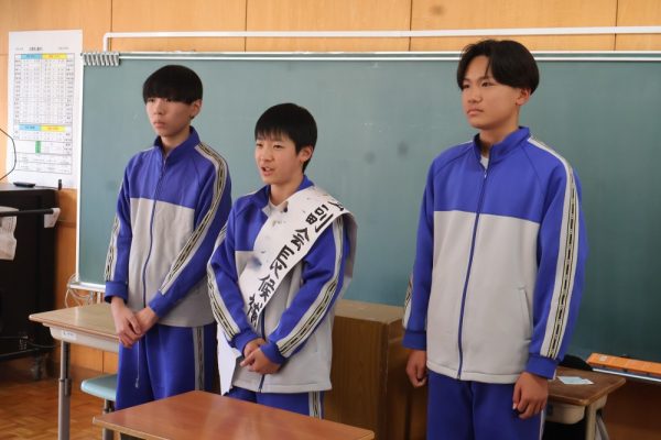 令和8年度生徒会役員選挙の期日がいよいよ迫ってきています。選挙運動が可能な期間は木曜日の朝までですので、実質残り1日ちょっととなりました。校舎内にはられた各候補者のポスター(PC仕様か手がきのどちらかを候補者が選びました。PCにはPCの良さが、手がきには手がきの良さが感じられます)と、本日の選挙運動の様子をお伝えします。3年生教室ではたくさんの質問が出ました。どれだけ3年生が未来の三珠中のことを真剣に考えてくれているかの証だと思いました。また、その1つ1つの質問にはきはきと答えていた候補者も素晴らしかったです。どの候補も最後まで頑張ってください!