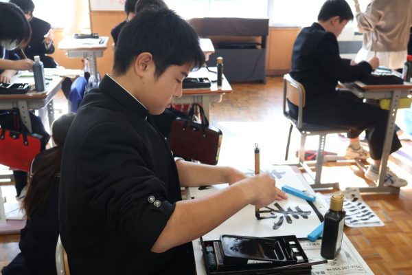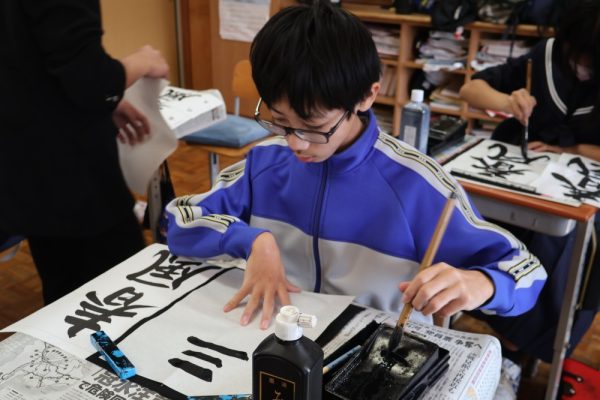 本日、1年生は書写の時間に書道に取り組みました。この様子を見ると、いよいよ2学期も終わりが近づいて来ているのだなぁと思います。習字は日本が世界に誇れる文化の1つです。授業を通して少しでも上達できるよう、精神を集中して取り組みましょう。