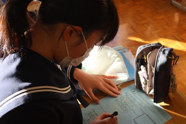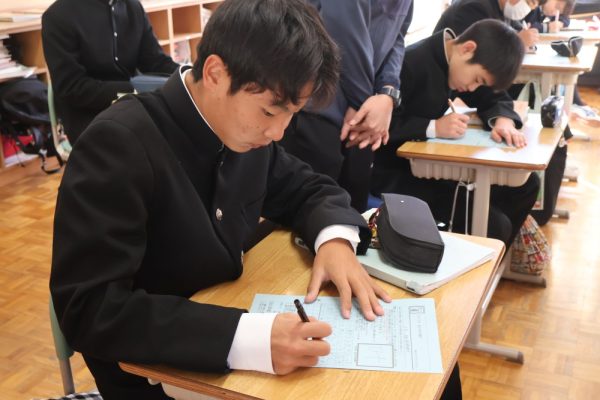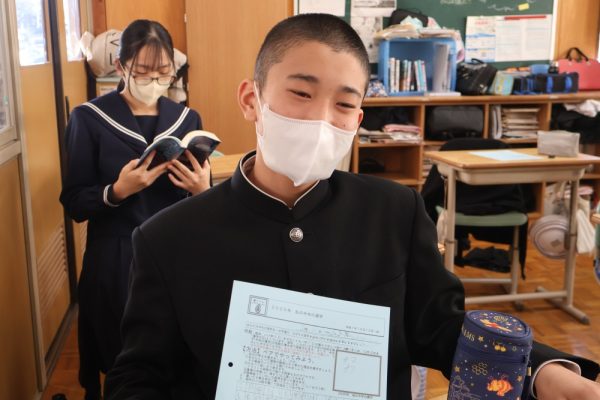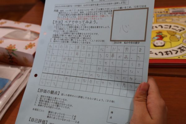 本日のいしずえタイムは久しぶりの「書くトレ」、お題は『2025年 私の今年の漢字』です。毎年12月12日は「漢字の日」。京都の清水寺で『今年の漢字』が発表されます。先程、発表された今年の漢字は『熊』でした。三珠中の生徒にとっての今年の漢字には『心』、『受』、『力』、『勉』、『楽』、『努』……など色々な漢字が出されました。どれもみな良い字だなぁと思います。(下の問題をクリックすると本日の問題文を読むことができます。)