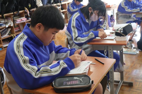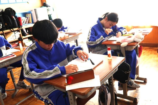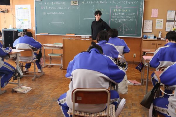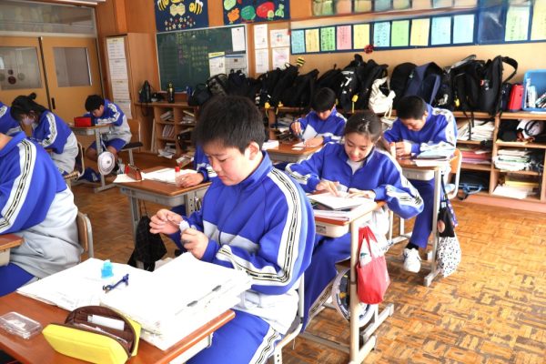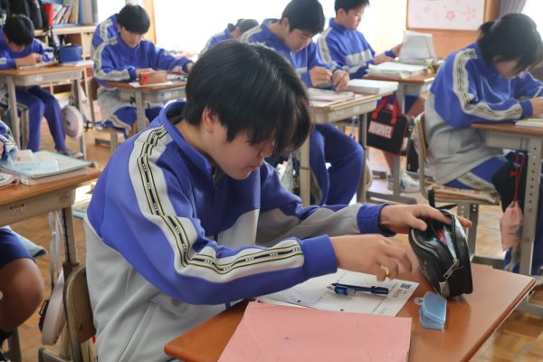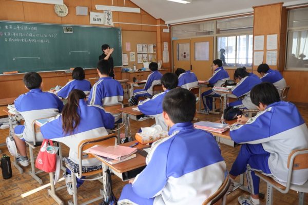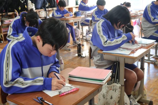 本日は3時間目、1年生数学の時間を参観しました。授業では『垂直二等分線の作図』に取り組んでいました。授業のまとめにもありましたが、数学で垂直二等分線を使うのは次の3つのどれかです。❶『垂直二等分線を作図しなさい』という場合、❷線分の中点の場所を見つける場合、❸ある2点から等しい距離にある場所を見つける場合。この3つを覚えておけば垂直二等分線の作図はばっちりと言って良いでしょう。作図に一生懸命取り組んでいた1年生。この積み重ねが学力の向上につながっていきます。
