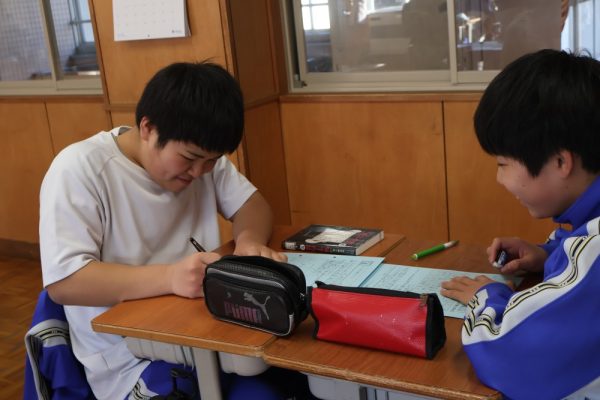 三珠中学校ホームページ「日々の様子」の更新が滞ってしまい申し訳ありませんでした。またこれから、可能な範囲で更新をしていきたと思います。今回は過日1月16日(金)に行われたいしずえタイムの様子をお伝えします。この日は教頭先生が放送室より出題をしてくれました。お題は『2026年に達成したいこと』。良い表情で取り組んでいる生徒のみなさんの姿を見ると元気が湧いてきます。みなさんの書いたことがそれぞれ達成されることを願っています。(下の問題をクリックするとこの日の問題文を読むことができます。)![]()