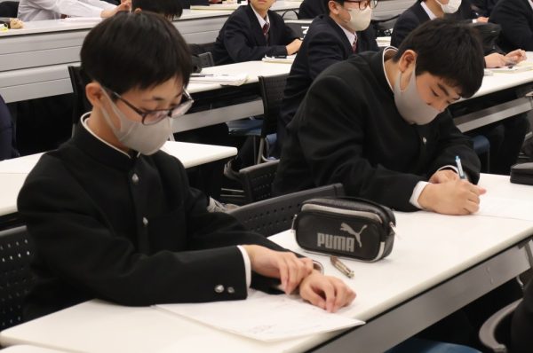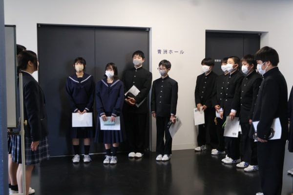 昨日のことになります。1年生が青洲高校訪問学習に行って来ました。町内4中学校の1年生全員が青洲高校を訪れ、「同じ地域で学業に励む青洲高校の発表を町内4校の中学1年生が聴くことで次のねらいを達成する。①発表や探究活動のお手本として、今後の発表や探究活動に生かす。②地域についての理解を深め、ふるさとに愛着と誇りをもつための一助とする。③青洲高校に対して親近感をもち、地元の高校に対する関心を深める」を目的に行われました。三珠中1年生は、高校生の発表を聴いた後、校舎内の案内もしていただきました。青洲高校生のみなさん、お世話になりました。そして、ありがとうございました。