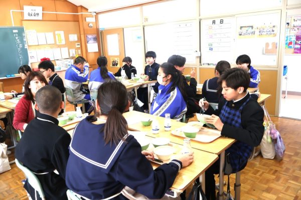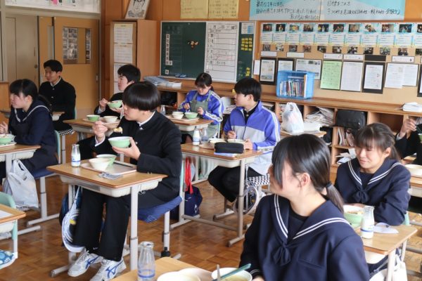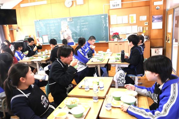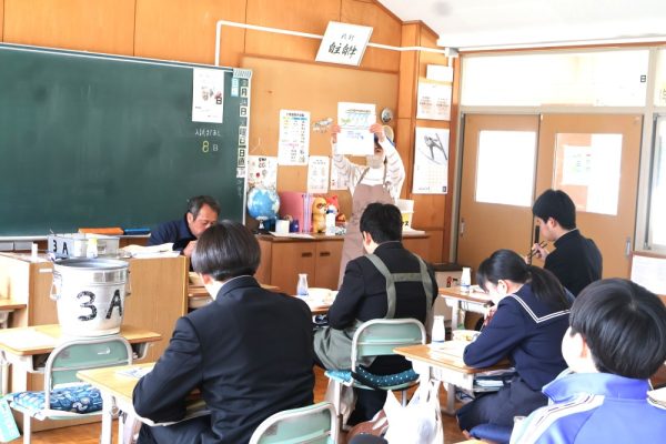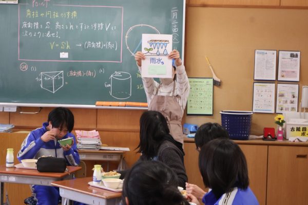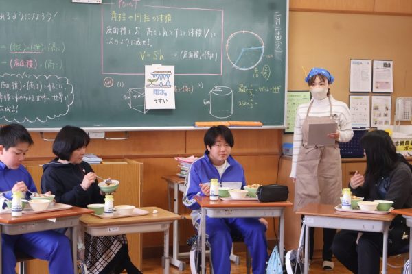 本日、給食指導が行われ、「雨水」についてのお話がありました。「雨水(うすい)」とは、季節の指標である二十四節気の第2番目の節気で、「空から降る雪が雨に変わり、積もった雪や氷が解けて水になる」頃を示します。3月の献立には、給食を食べられるのも残りわずかとなった3年生に食べてもらいたいメニューを入れてくださったというお話もありました。三珠給食センターの温かさ、素晴らしさを改めて感じた本日の給食指導となりました。