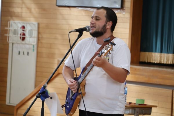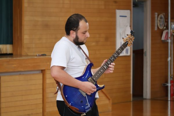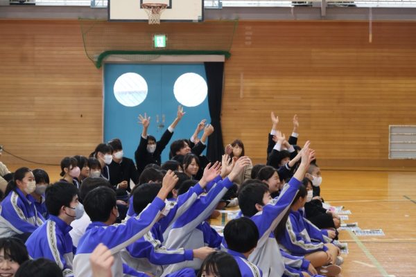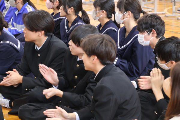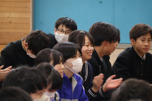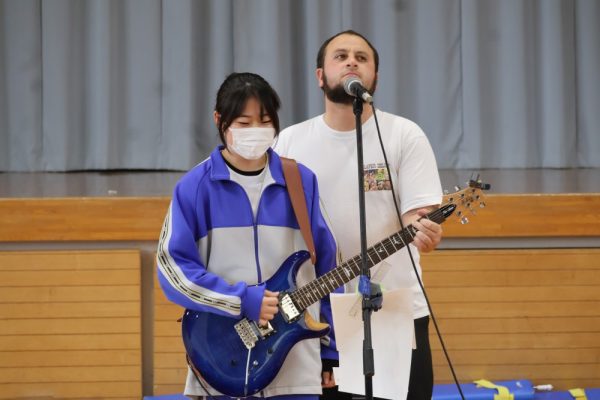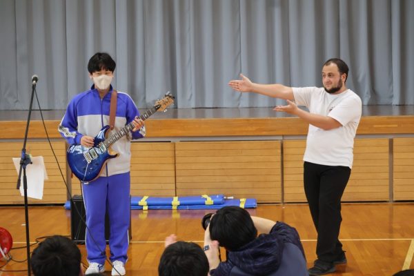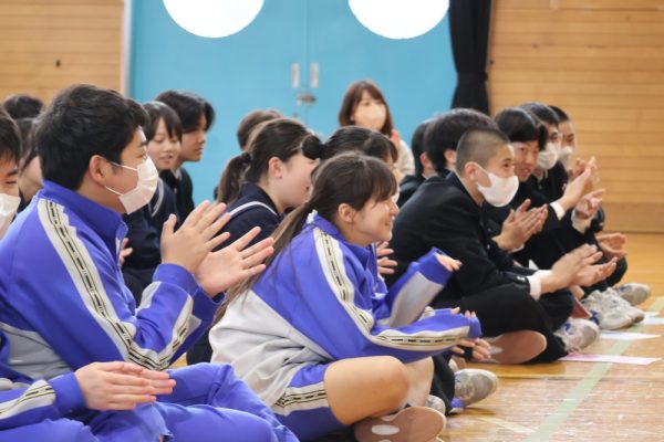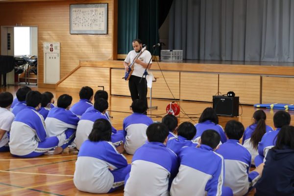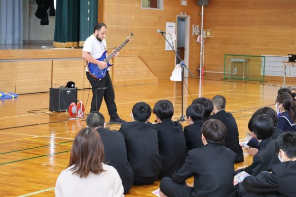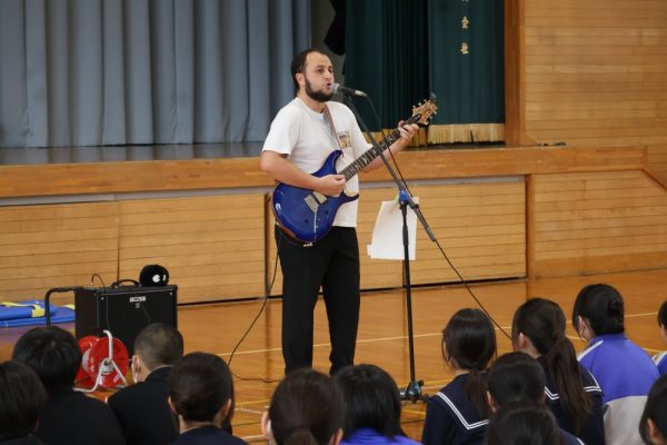 本日、1・2年生は3学期末テストが終了しました。そして、3年生の多くの人は週明け水曜日がいよいよ山梨県公立高校の後期入試です。今日の6時間目、テストが終了した1・2年生の労を労って、そして後期入試を控える3年生にエールを送る音楽会が開かれました。音楽会の内容は、本校ALTのデイル先生のギターによるコンサート。約1時間、みんなで楽しい時間を過ごしました。セットリストにある曲だけでなく、「ギター教室」や「ほんの2時間前に覚えた曲(Stand by me)の演奏」など生徒たちを喜ばせようと様々な工夫をしてくれたデイル先生。今日は本当にありがとうございました。コンサートの後にみんなで書いたお礼のメッセージを楽しみにしていてくださいね。(下の写真をクリックすると本日のプログラムをご覧になれます。)![]()