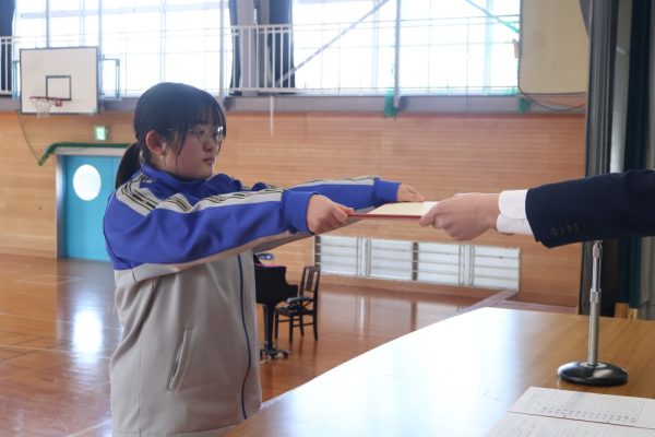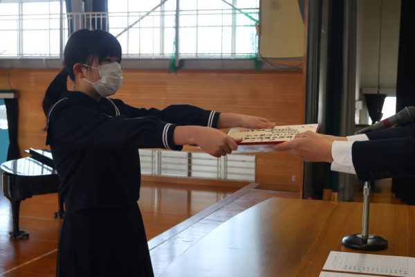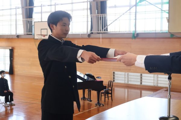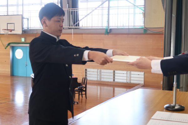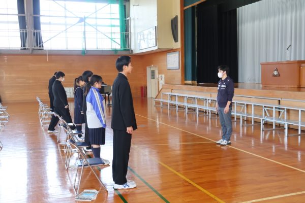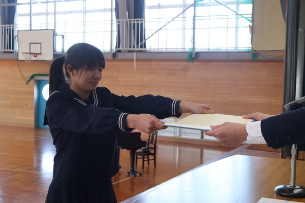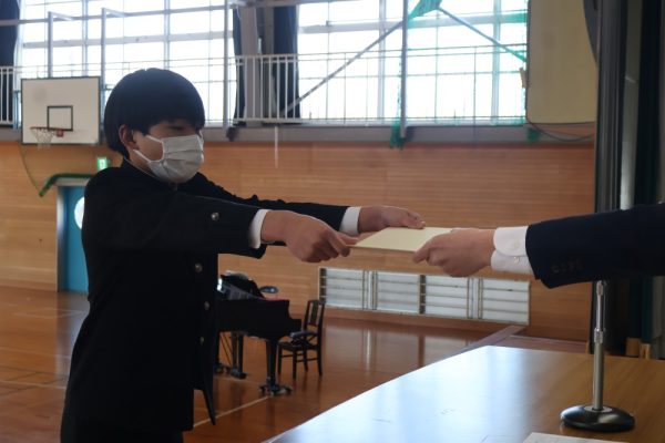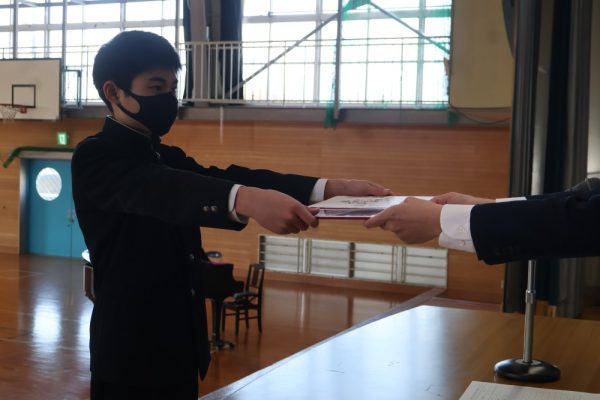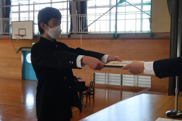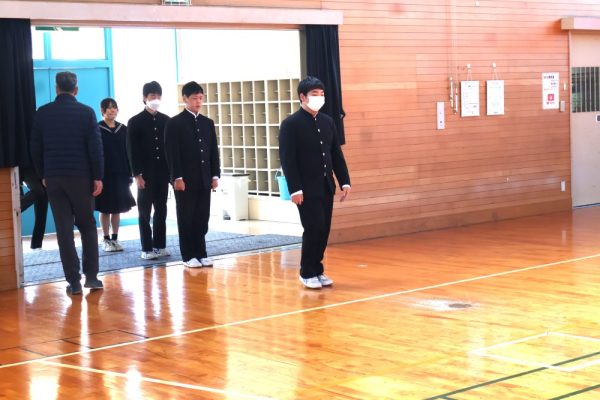 本日の2時間目、3年生は卒業証書を授与されるシーンの練習を行いました。卒業証書授与は義務教育修了を意味する大切な節目の瞬間です。今日の練習では、以前の練習とくらべて返事が立派だったと学年主任の先生が褒めていました。当日は一人ひとり、堂々とした姿を保護者の方々に見せてあげてほしいと願っています。保護者は、堂々と卒業証書を授与される姿を見て感動するのです。