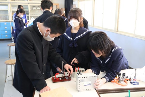 今日は町内6小学校の卒業式が行われ、私は大塚小学校の卒業式に参加したのですが、アットホームな温かく素敵な卒業式でした。大塚小から戻り、3時間目の2年生理科の時間を参観しました。授業では、磁界から電流が受ける力(コイルがどう動くか)についての実験をしているところでした。生徒の中には『これまでの実験の中で一番楽しみな実験』だと言っている人もいました。この実験から『フレミングの左手の法則』を習得するのですが、電流も磁界も目に見えず、中学生が悪戦苦闘する分野です。そんな難しい領域で大切なのが『なぜ?』『どうして?』と思う気持ちです。この気持ちこそが学習の質を上げる原動力になります。『不思議だな』と思う気持ち、これからも大切にしていきましょう。